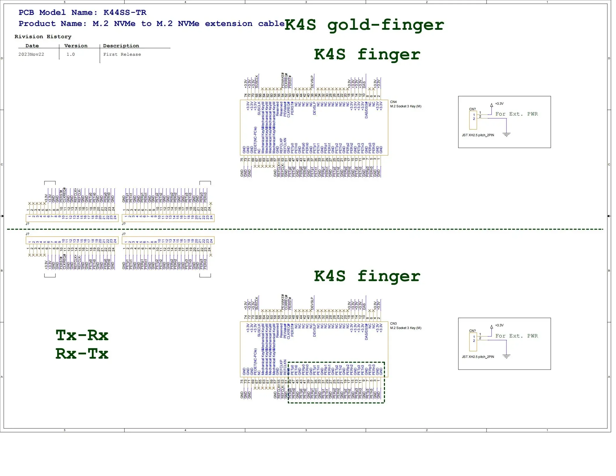 ModelosDirección de interfaz Goldfinger y conectorSeñal Tx-RxK44SS-TTM.2 NVMe Gold-Finger a M.2 NVMe Gold-FingerSeñal directaK44SS-TRDedo Dorado a M.2 NVMe Dedo DoradoSeñal de intercambioVentajas del producto: