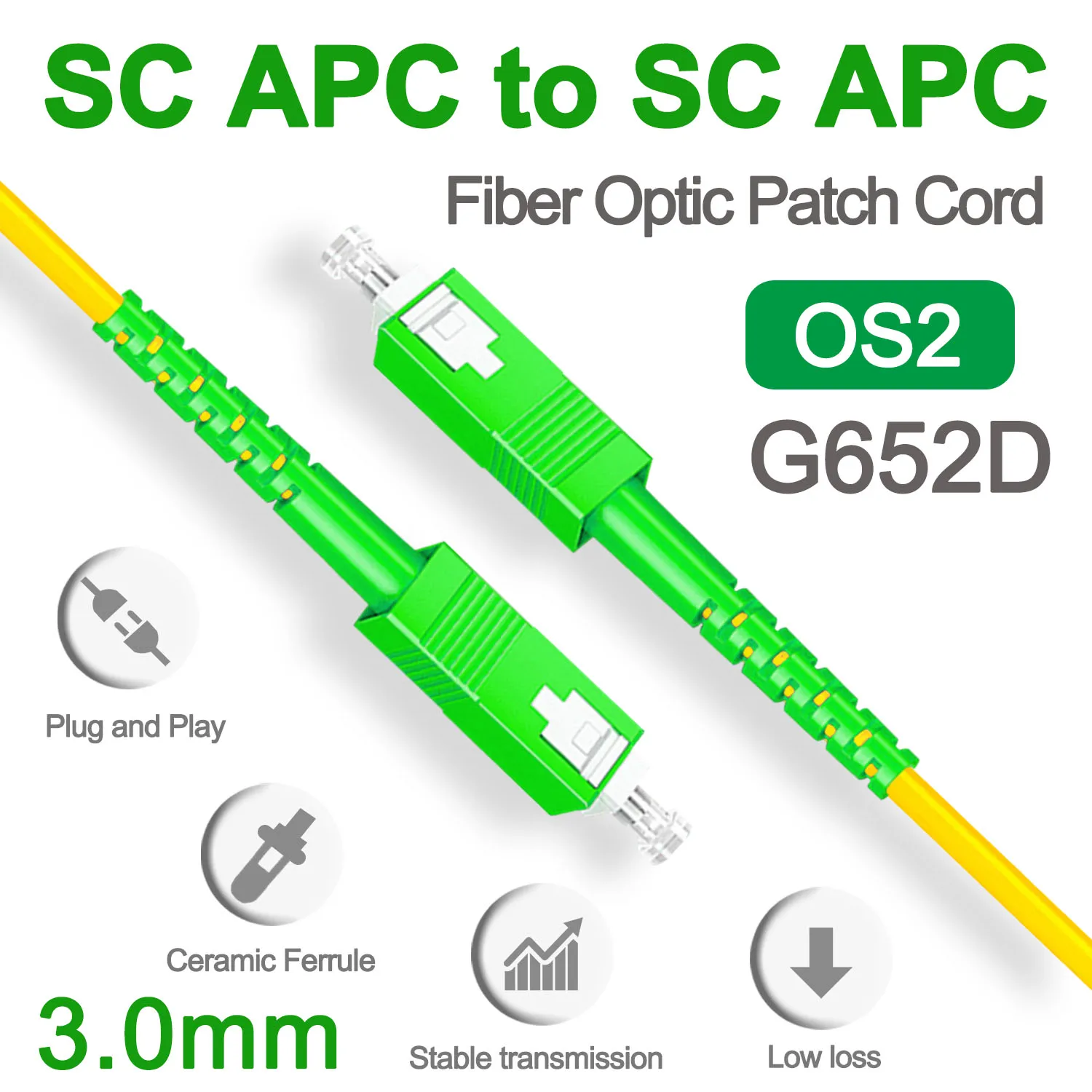 Comprar Cable de puente de fibra óptica SC APC, Cable OS2 de 3,0mm, monomodo Simplex, 1m, 3m, 5m, PVC G652D SM 1310/1550nm FTTH