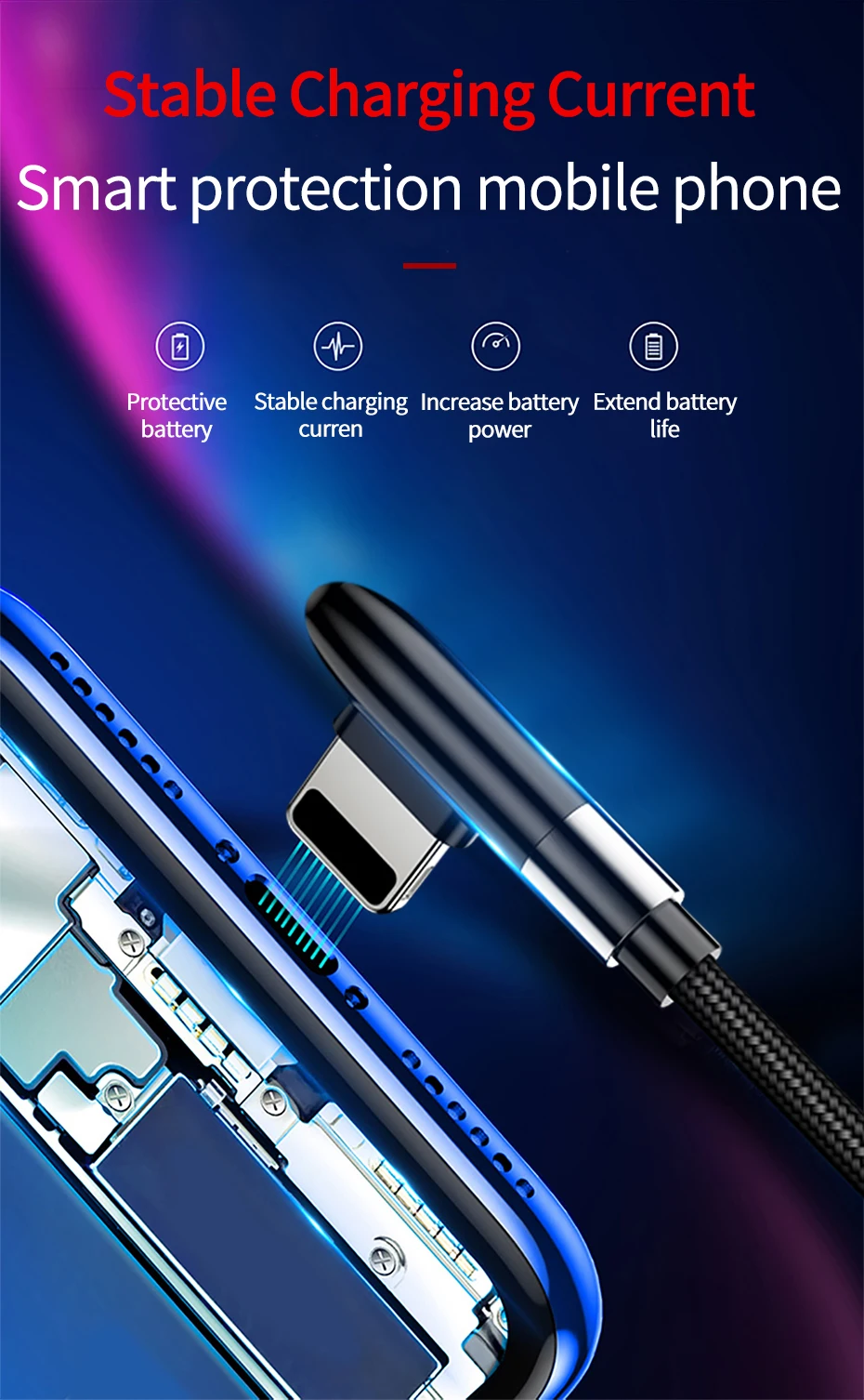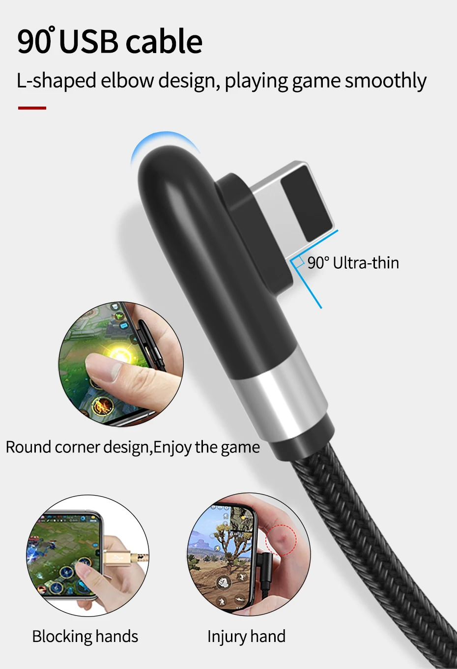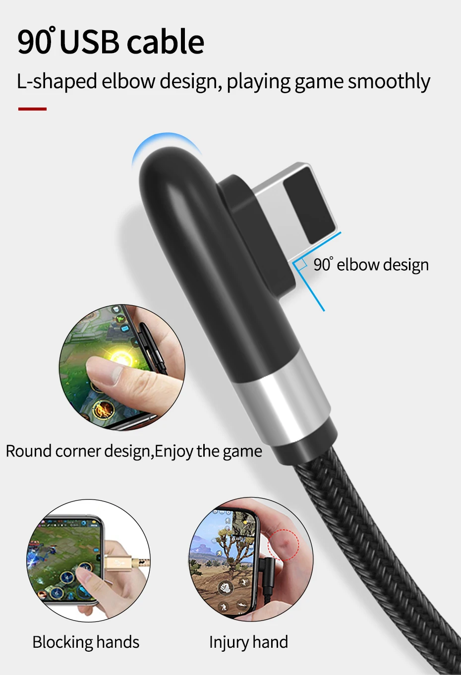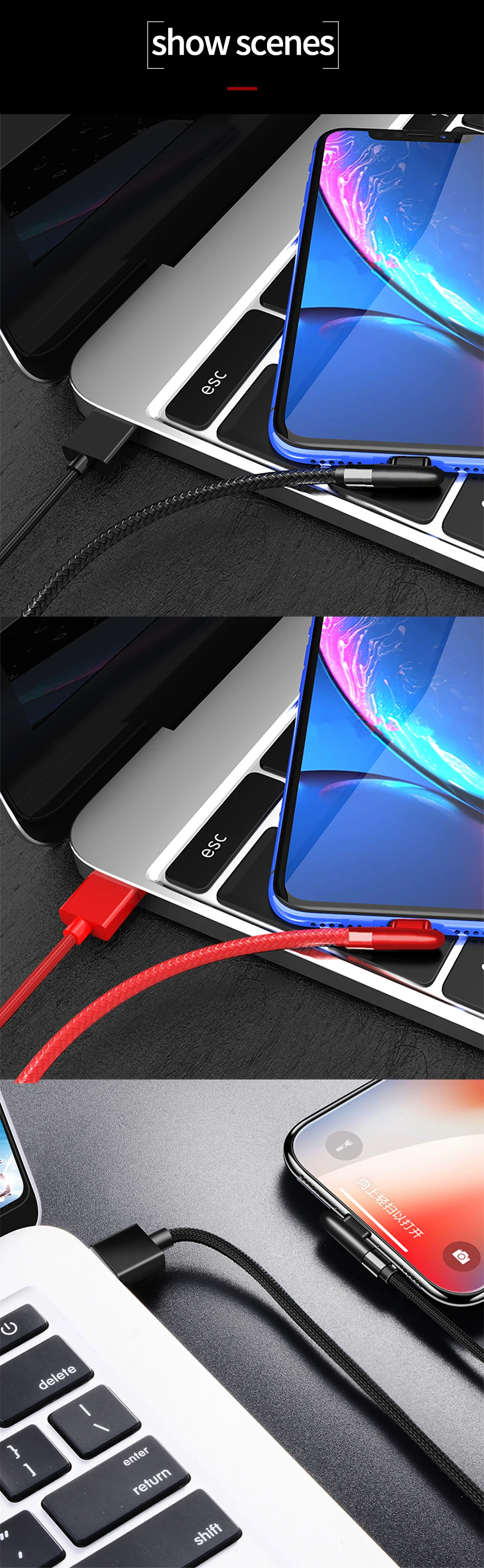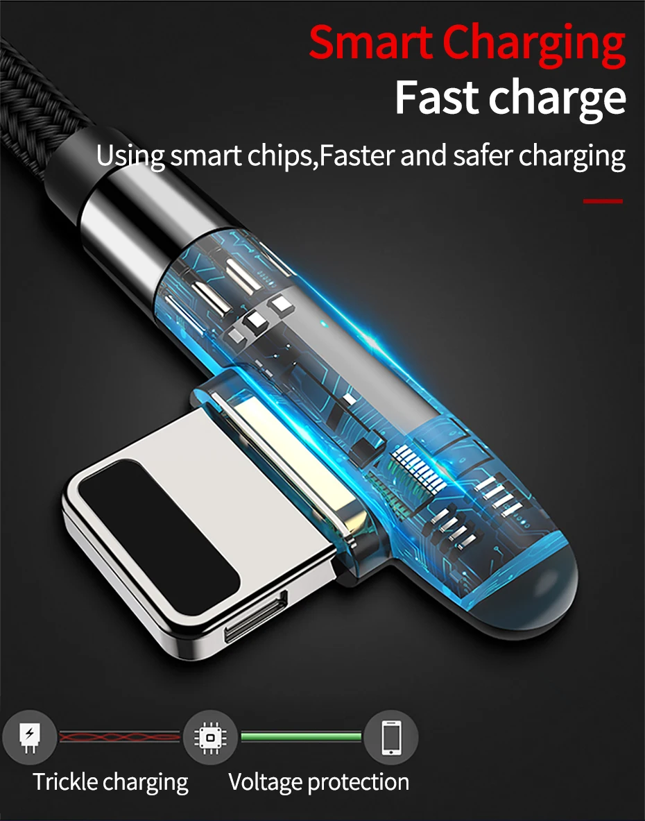 Cable PZOZ 3A de 90 grados para iPhone 14 13 12 11 Pro Max Xs Xr X 8 6 Plus 5 5S SE iPad Cable de carga rápida Cable de cargador