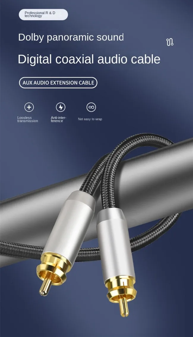 Comprar Cable RCA de Audio Digital, estéreo Premium a RCA Coaxial SPDIF, altavoz macho, Hifi, Subwoofer, AV 1m, 1,5 m, 2m, 3m, 5m