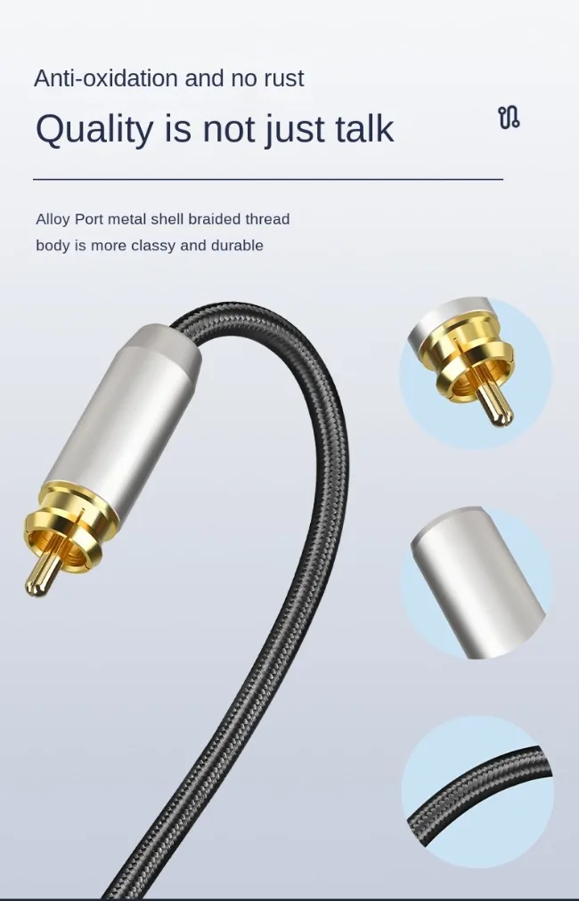 【Calidad de sonido superior】-Este cable subwoofer cuenta con conectores RCA chapados en oro resistentes a la corrosión y una carcasa de aleación pulida que proporciona una conductividad óptima y audio estéreo puro y claro. El doble blindaje del cable, protegido por trenza de cobre y papel de aluminio, proporciona la máxima potencia de señal con una pérdida mínima de señal y protección contra la interferencia de radiofrecuencia (RFI) y la interferencia electromagnética (EMI).【Amplia aplicación】-Con conectores RCA delgados, este cable RCA macho a macho se adapta perfectamente a dispositivos de RCA estándar, S/PDIF, puertos coaxiales, incluido Subwoofer, altavoz Hi-Fi, amplificador, receptor AV, controlador de DJ, tocadiscos, barra de sonido, sistema de cine en casa, cine en casa, reproductor de DVD, reproductor de Blu-ray, Smart TV, Caja Sky HD.【Calidad duradera】-El cable de audio RCA está diseñado para durar para siempre. Fabricado con nylon de algodón evolucionado, el cable de audio coaxial trenzado pasa más de 10000 pruebas de flexión y puede soportar cualquier giro, tirón y enredo. Conectores chapados en oro y carcasas de latón resistentes a la corrosión y garantizan una calidad de sonido óptima.【Señales estable】-El diseño de puesta a tierra del conductor exterior y la impedancia de 75 Ω garantizan una conexión estable con todo tipo de puertos coaxiales para evitar la pérdida de señal y reducir la interferencia EMI.