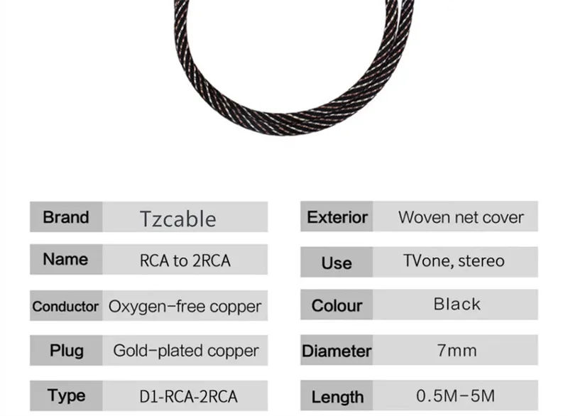 - 7.Interfaz: conector RCA macho chapado en oro de cobre puro
