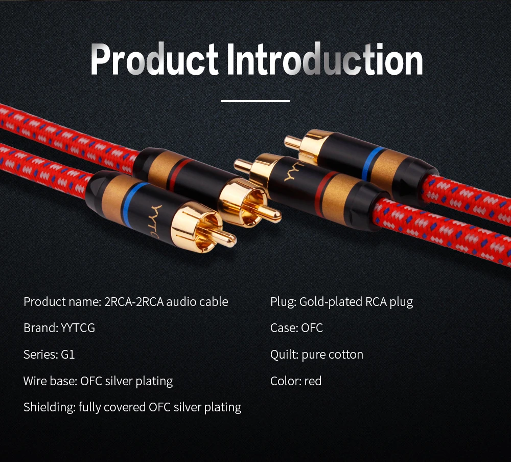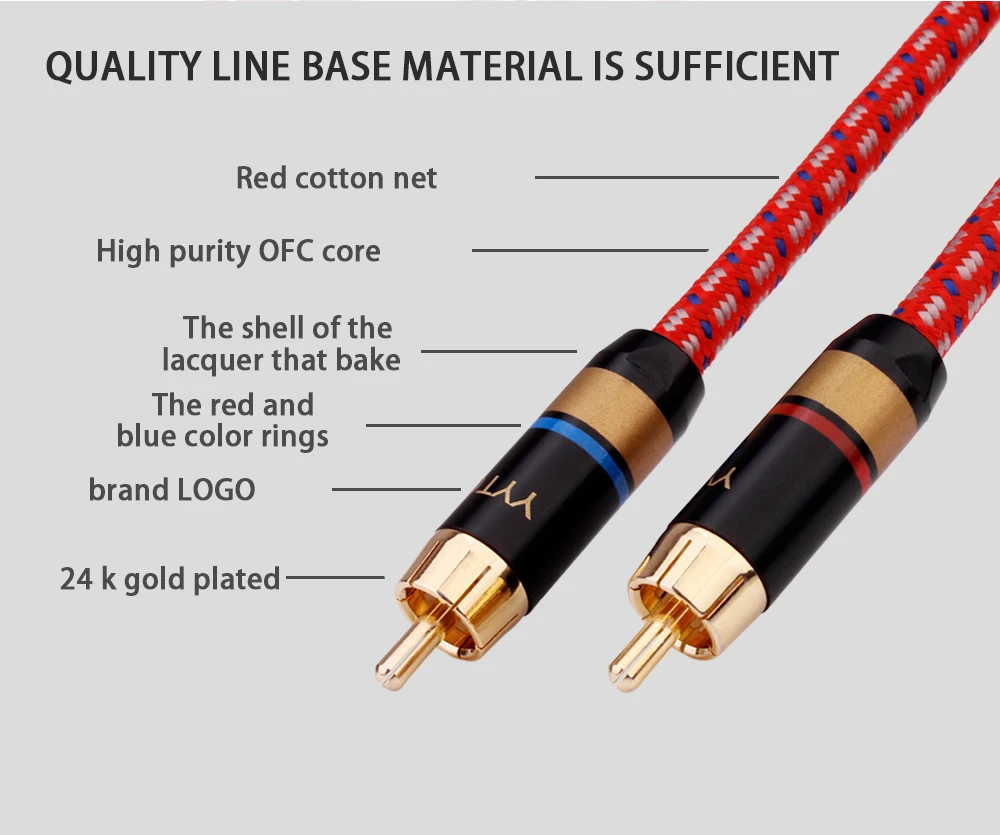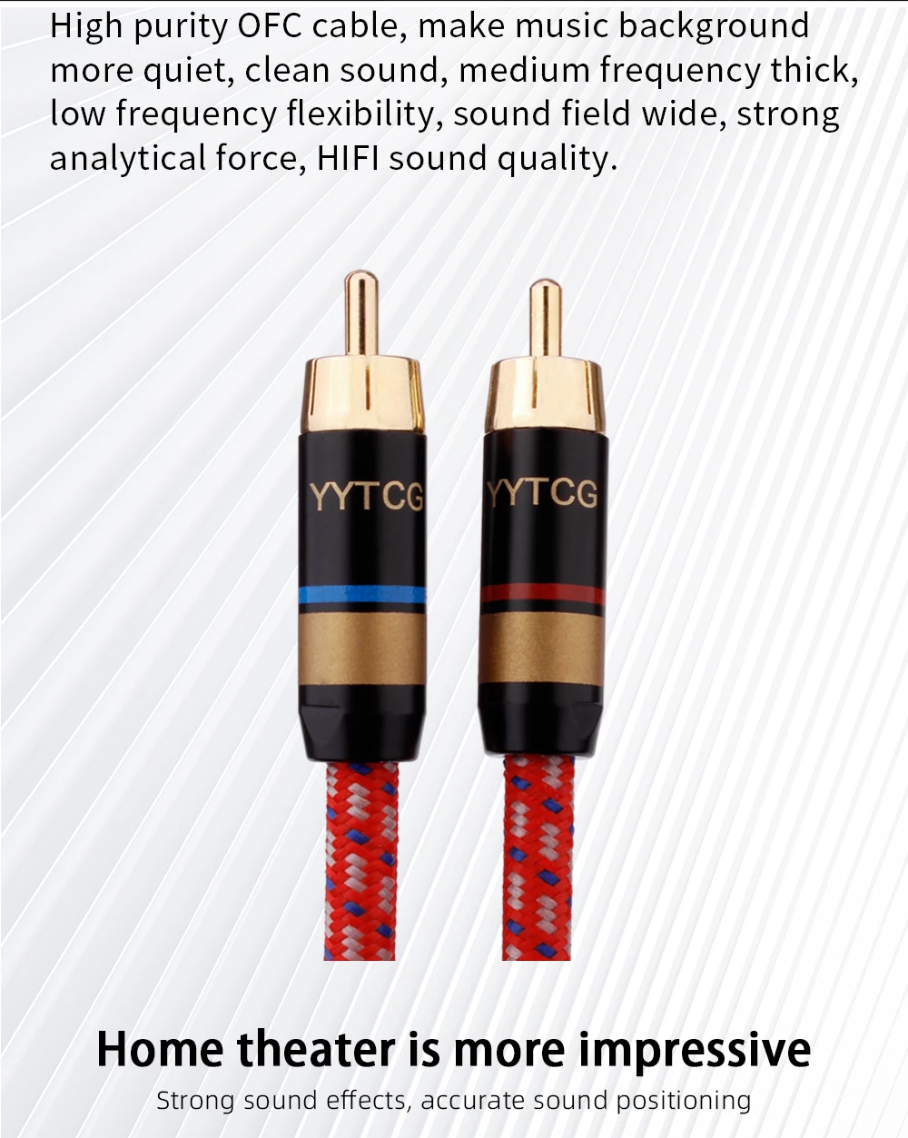 YYTCG Hifi RCA Cable de alta calidad 4N OFC HIFI 2RCA macho a macho Cable de Audio Hifi amplificador CD DVD cable de audio