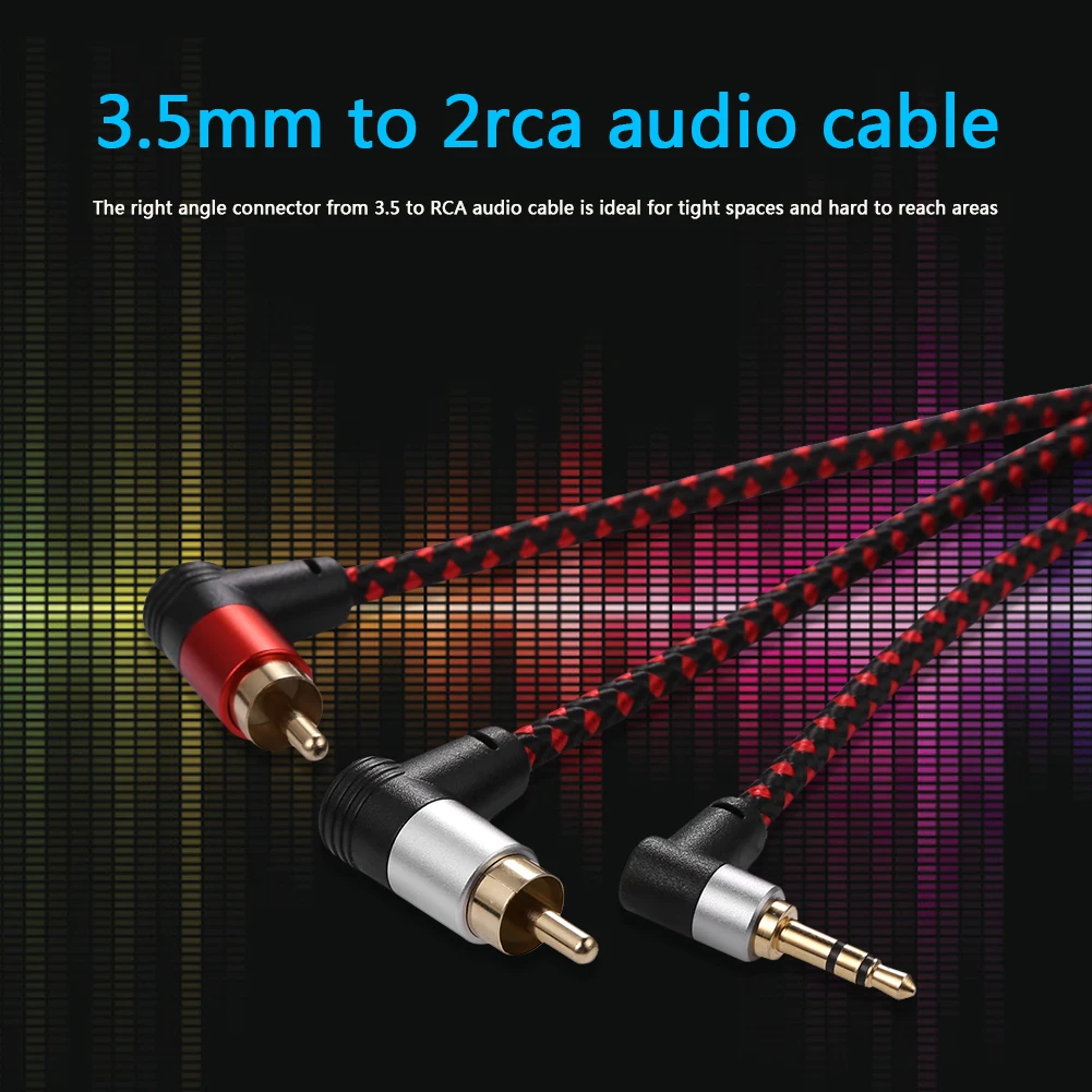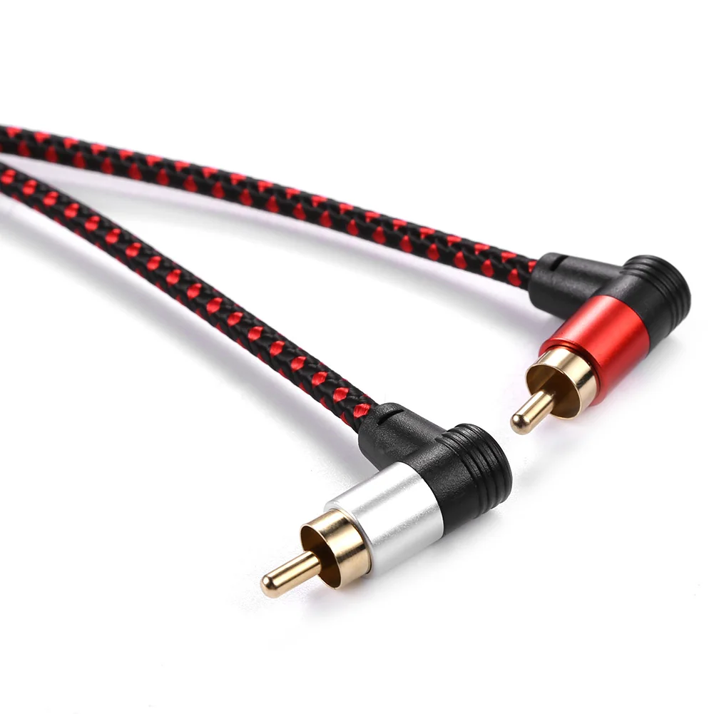 Comprar Cable RCA macho a 2 RCA macho de 90 grados para amplificador de DJ, Cable divisor de Audio estéreo de ángulo recto, AUX Y, 1m/2m, 3,5mm