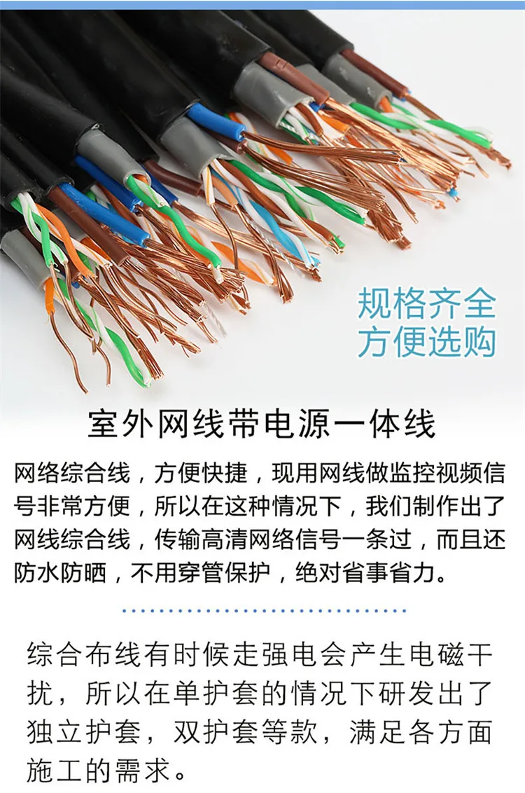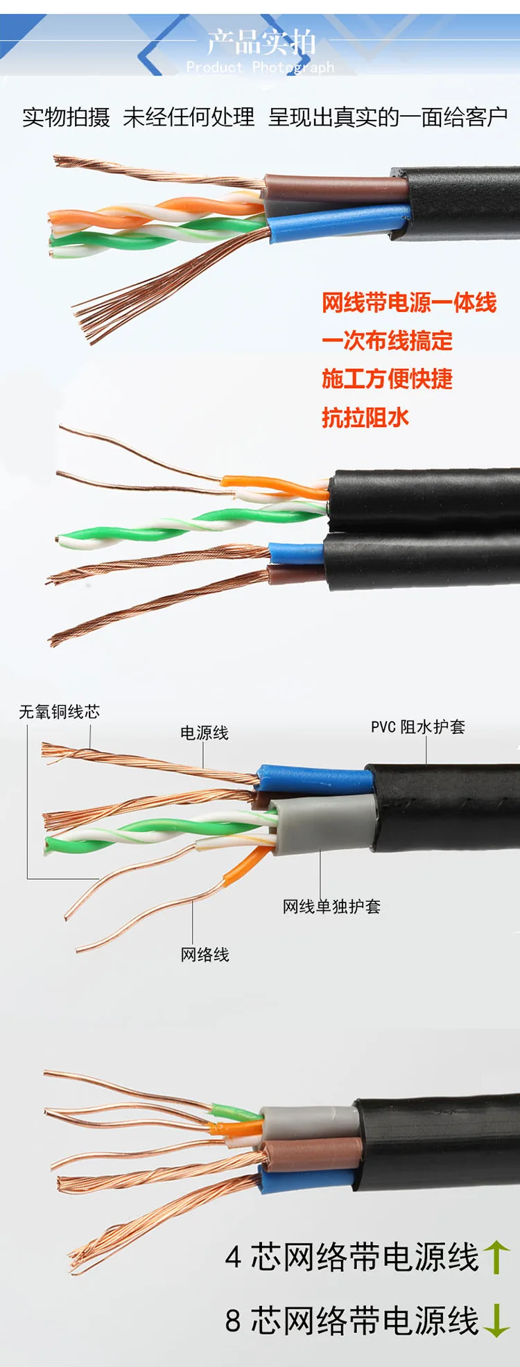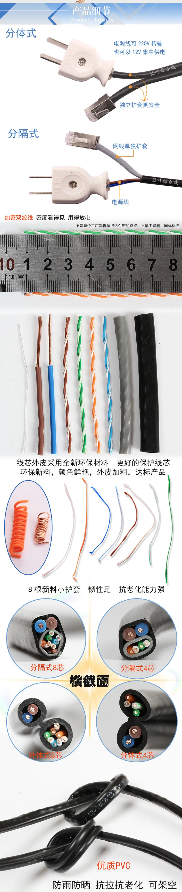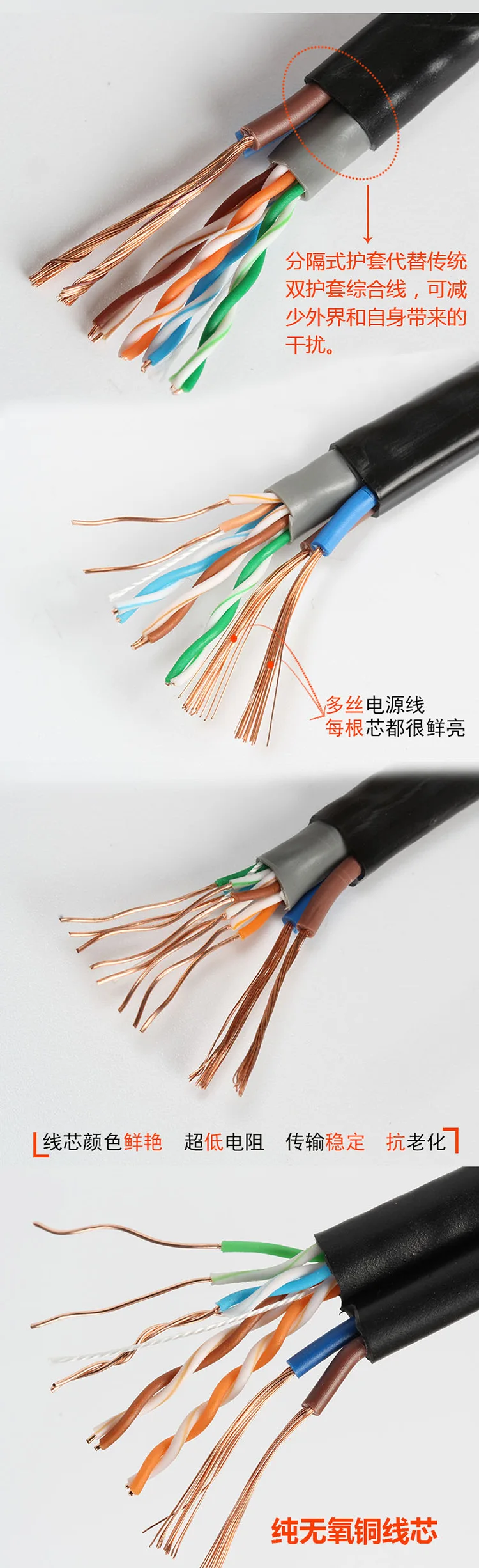 Comprar Cable de red con alimentación POE integrado, Cable de red de cobre puro 0,5 de una línea de 4 núcleos más Cable de alimentación de cobre puro 0,75