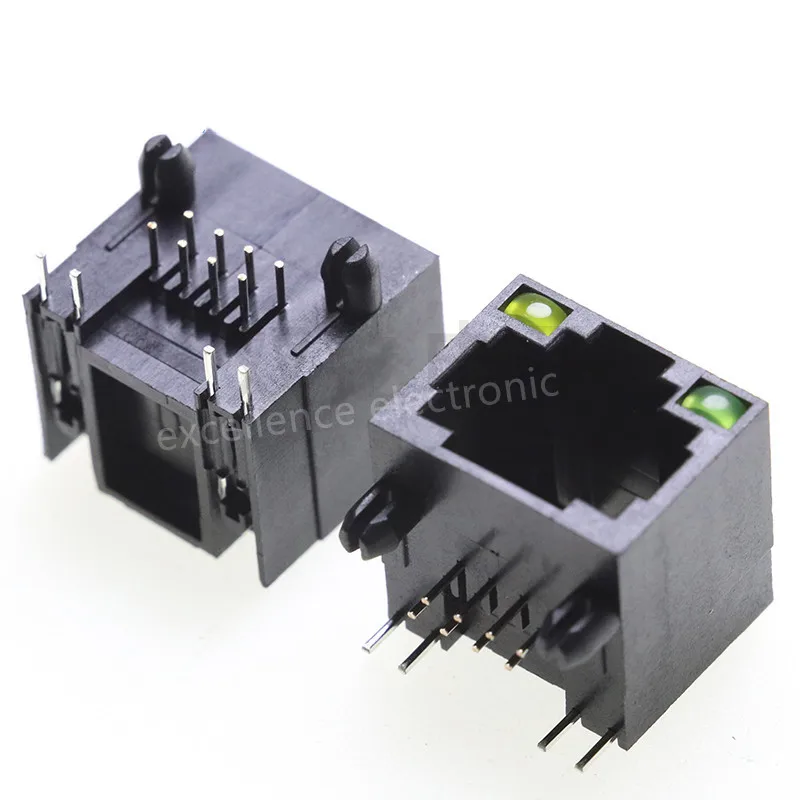 5 uds 2LED luz RJ45 enchufe 8P8C cabeza de cristal Cable de red conector hembra 56 puerto único con luz