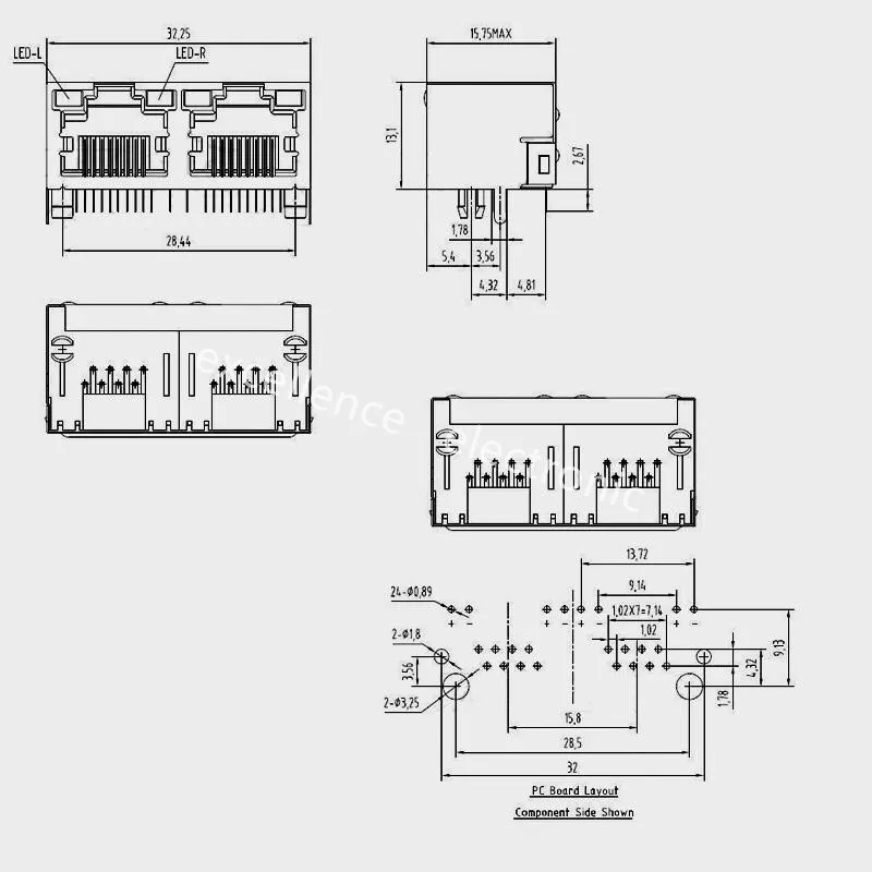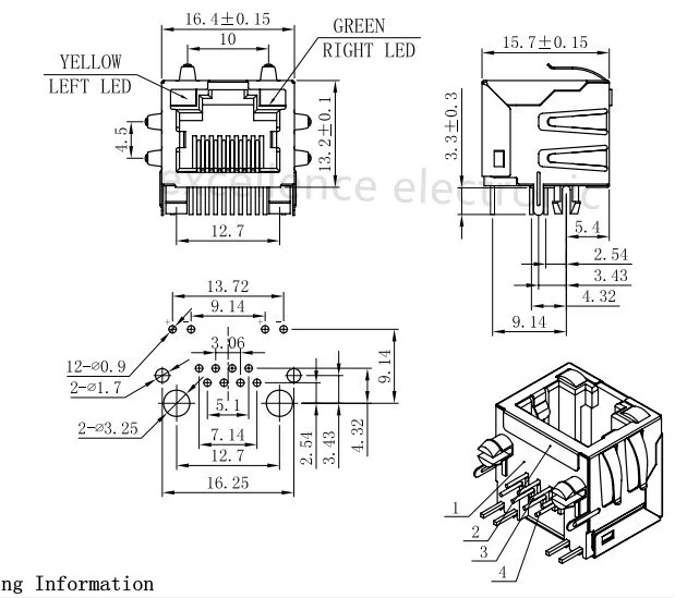 Este conector PCB de red modular blindado RJ45 (conector LAN) tiene luz indicadora LED para su uso conveniente
