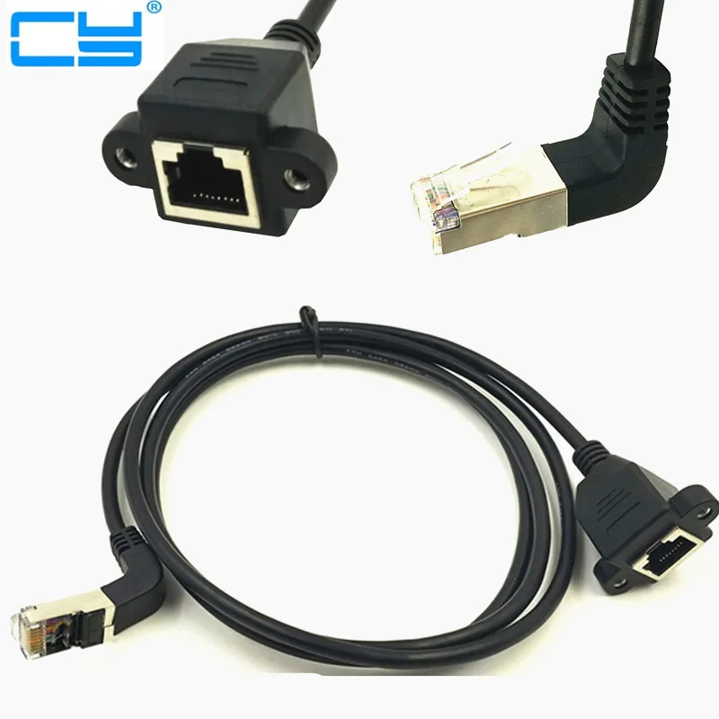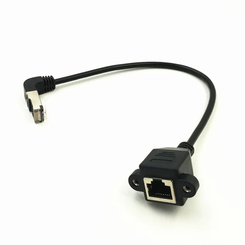 Abajo en ángulo 90 grados RJ45 Cat5 8P8C FTP STP UTP Cat 5E Tornillos macho a hembra Montaje en panel Parche LAN Cable de red Ethernet Cable 20cm 60cm 1M 1,5 m