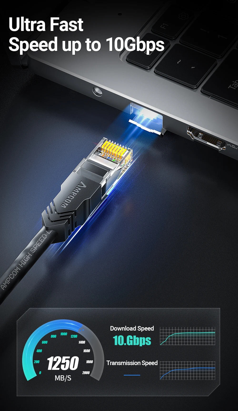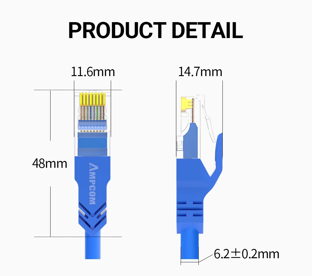 Un cable de conexión de red más atractivo, más elegante y fácil de usar diseñado por el experimentado equipo de diseño de AMPCOM en la industria de Internet.