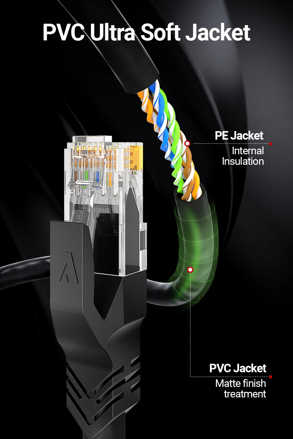 Comprar Cable de red flexible AMPCOM, CAT 6A Ultra suave 10Gbps RJ45 Cat6a Ethernet LAN Cable RJ45 de alta velocidad para enrutador módem PC
