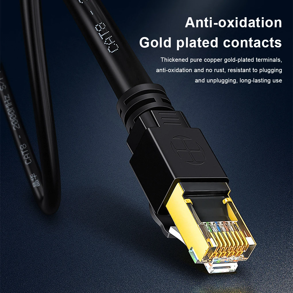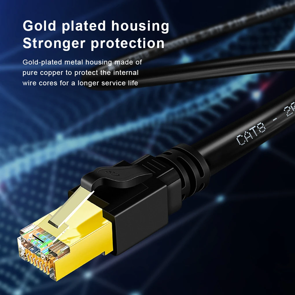 Velocidad rápida: Este cable de red adopta CAT8 y puede proporcionar una alta velocidad de transmisión de datos, hasta 40Gbps.
