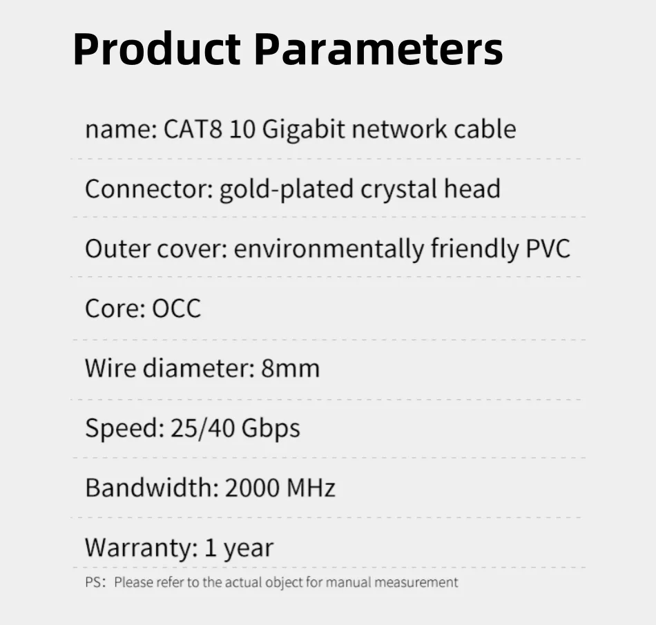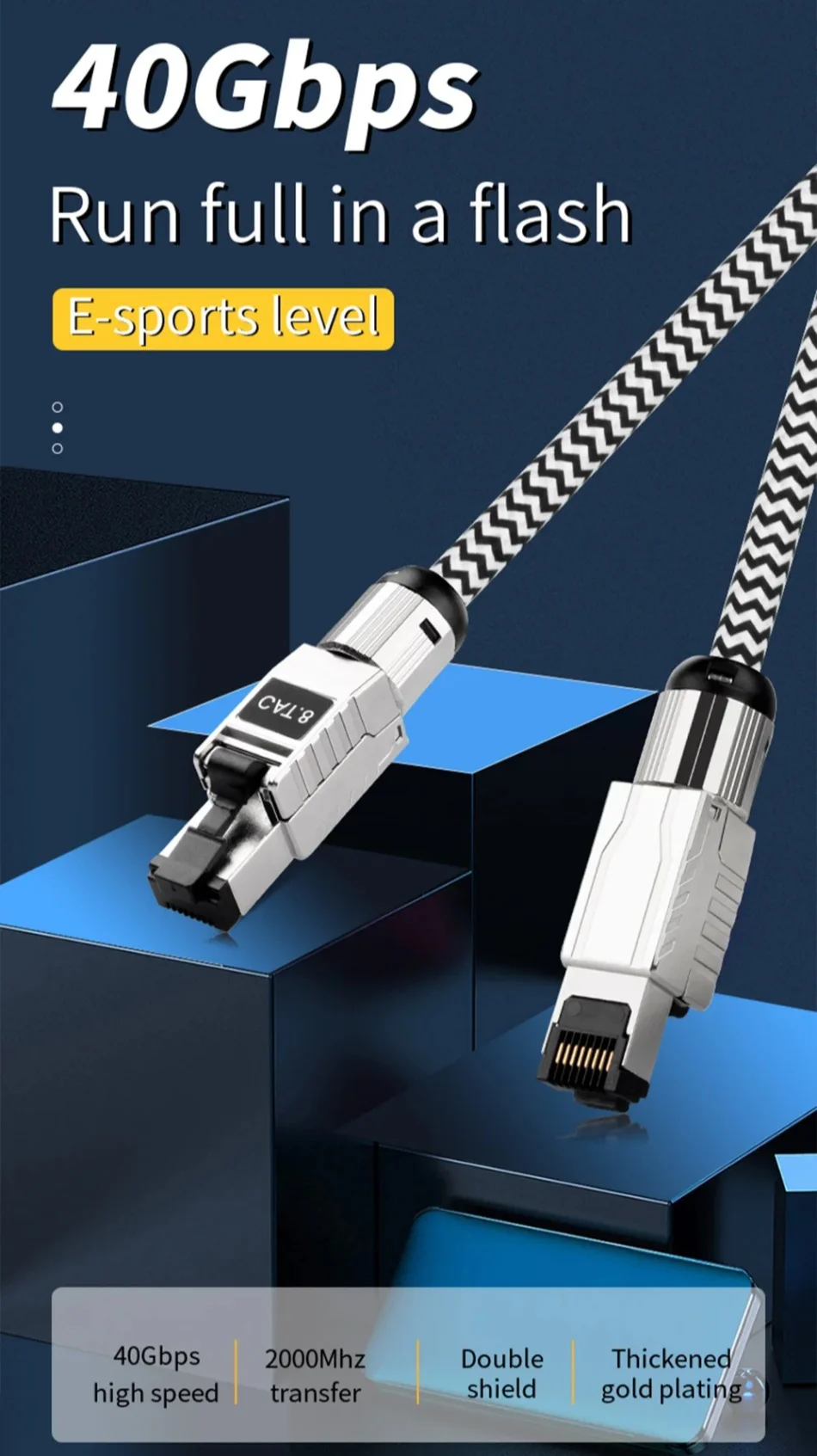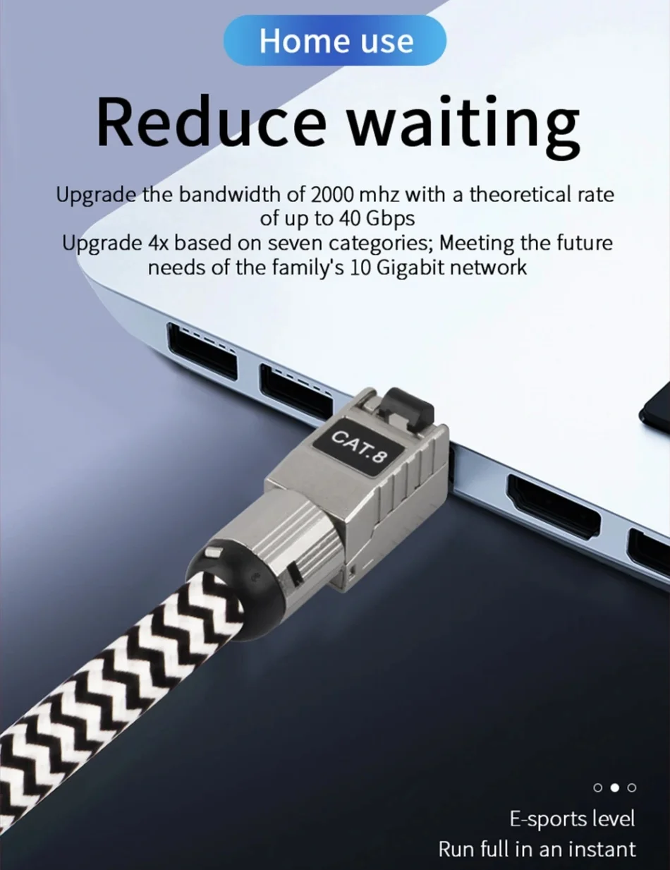 1.Nombre: Cable de red Cat8 de 40 Gbps