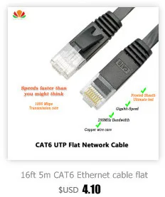 Cat6 (cable de categoría 6), seis cuatro pares de par trenzado no blindado, según el protocolo de comunicación Gigabit Ethernet es compatible con la línea de la serie CAT-5Material. CAT-6 Refuerzo de las soluciones de cruce y soluciones de sistema; ancho de banda de transmisión de señales de comunicación de hasta 250 MHz, superior al Cat-5e 2.5 veces el ancho de banda de transmisión; y las tasas de transferencia de hasta 1000 Mbps, y puede proporcionar 10Base-T, 100BASE-TX y 1000Base-T tipo Ethernet variedad, incluso en poco tiempo puede proporcionar Gigabit EthernetComprar Cable de red UTP CAT6 66ft 20m, cable de ordenador, cable gigabit ethernet, adaptador RJ45, cables de par trenzado de cobre, cable GigE LAN