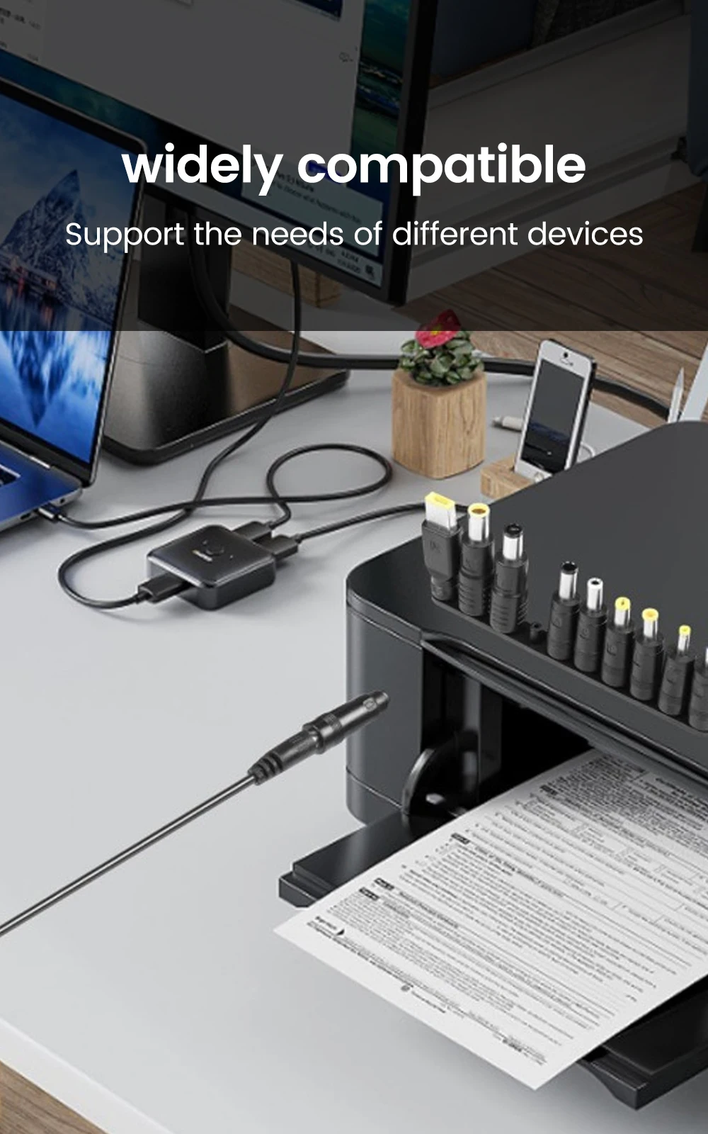 ¡El cabezal de carga debe admitir 20 V para ajuste de 5 velocidades! Puede transportar corriente de 3 A, cable de carga rápida PD a CC, admite fuente de alimentación PD, computadora portátil, adaptador de carga rápida de protocolo, fuente de alimentación móvil para cargar, el voltaje del dispositivo de salida PD debe admitir 36 W/45 W/65 W/90 W/100 W