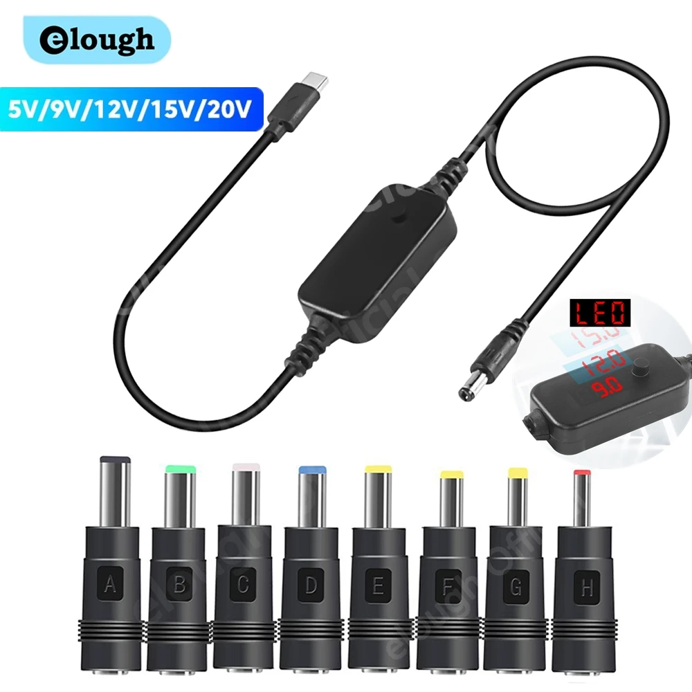 Comprar Cable de refuerzo Elough tipo C a CC USBC DC 5V/9V/12V/15V/20V WiFi a conector de Cable de banco de energía para enrutador Wifi Cable elevador de ordenador portátil