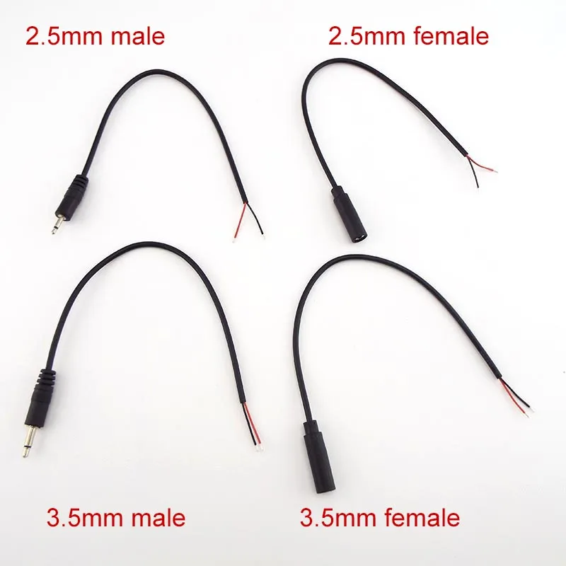 Cable de reparación de Audio DIY de 2,5mm y 3,5mm, conector de 2 polos y 3 polos, conector macho y hembra, cargador de Cable de extensión AUX de 2 pines y 3 pines