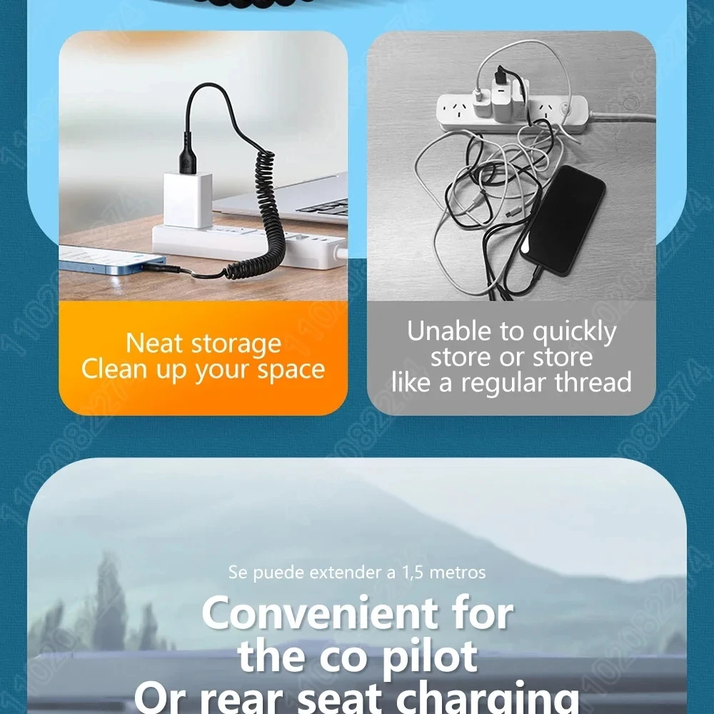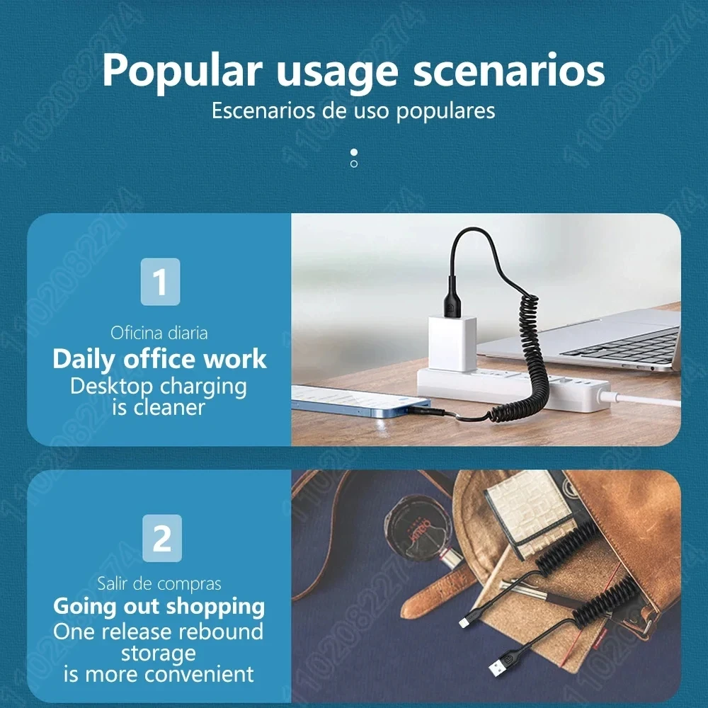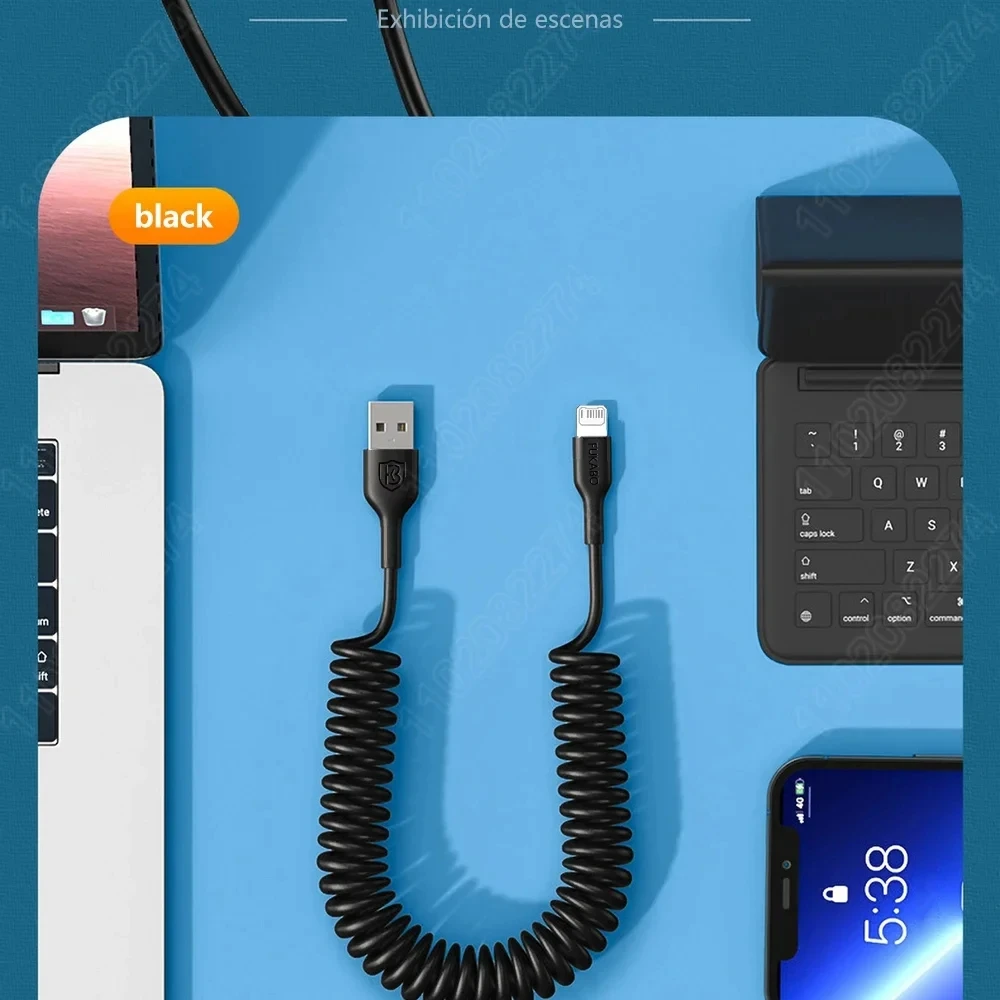Cable de resorte elástico USB A Cable de carga para Apple iPhone 27W línea de datos 14 13 12 Pro XS Max Plus accesorio de teléfono de carga rápida