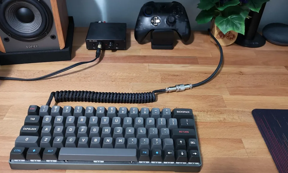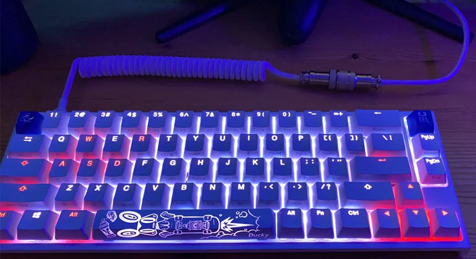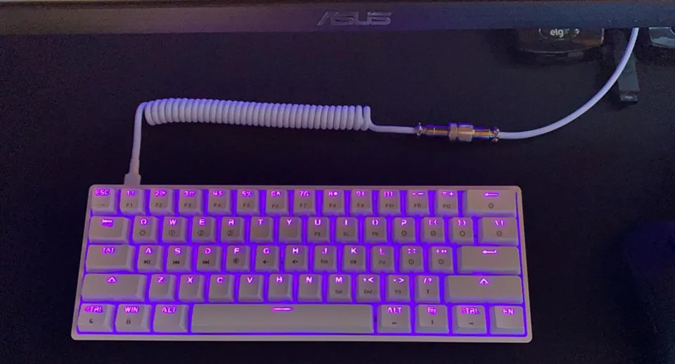 Cable USB tipo C de resorte en espiral en forma de L negro blanco nieve PET de manga única para Cable de Teclado mecánico con aviador GX12