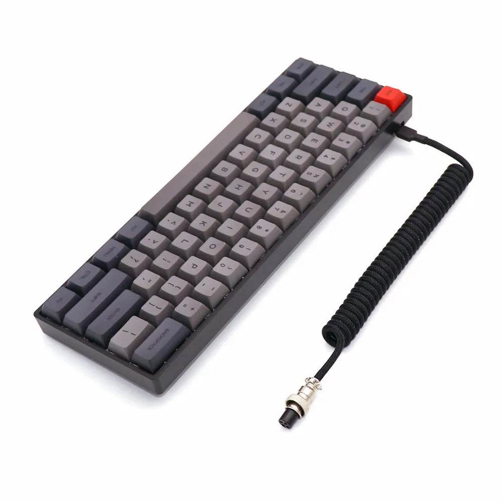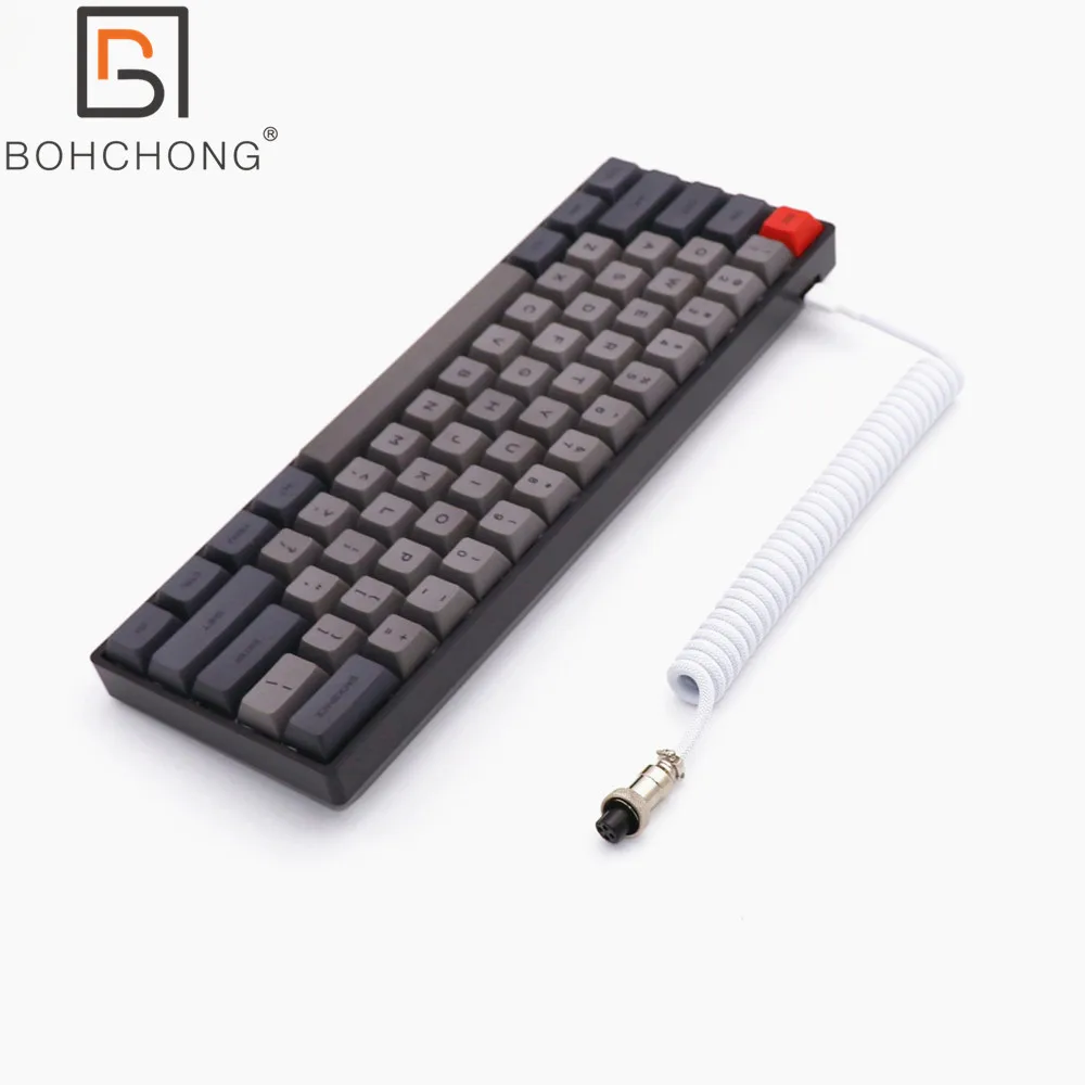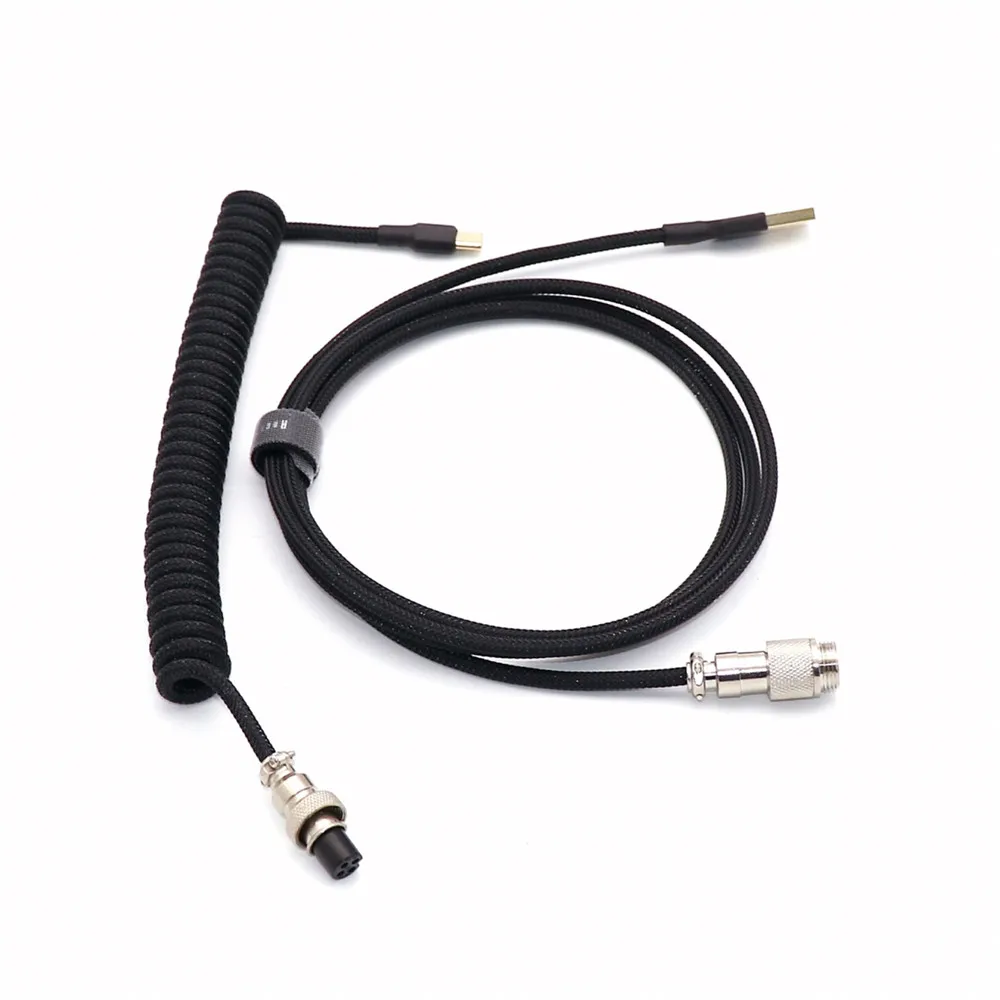 Comprar Cable de resorte enrollado en forma de L para teclado mecánico, conector USB tipo C de una sola manga, PET, aviador GX12, color blanco nieve y negro
