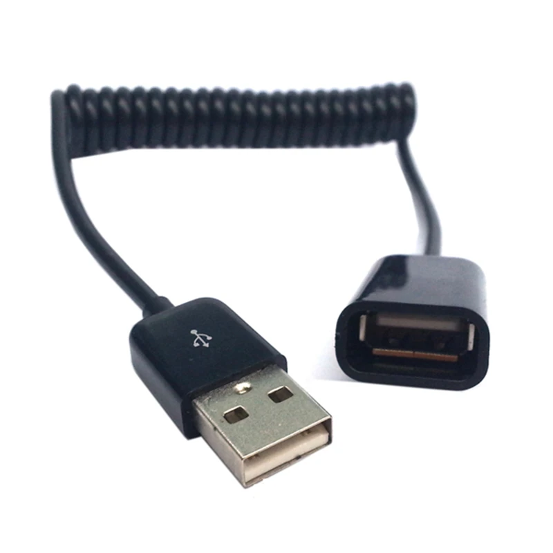 Cable de resorte de extensión de datos elástico USB 2.0 tipo A macho a hembra para PC portátil tableta móvil