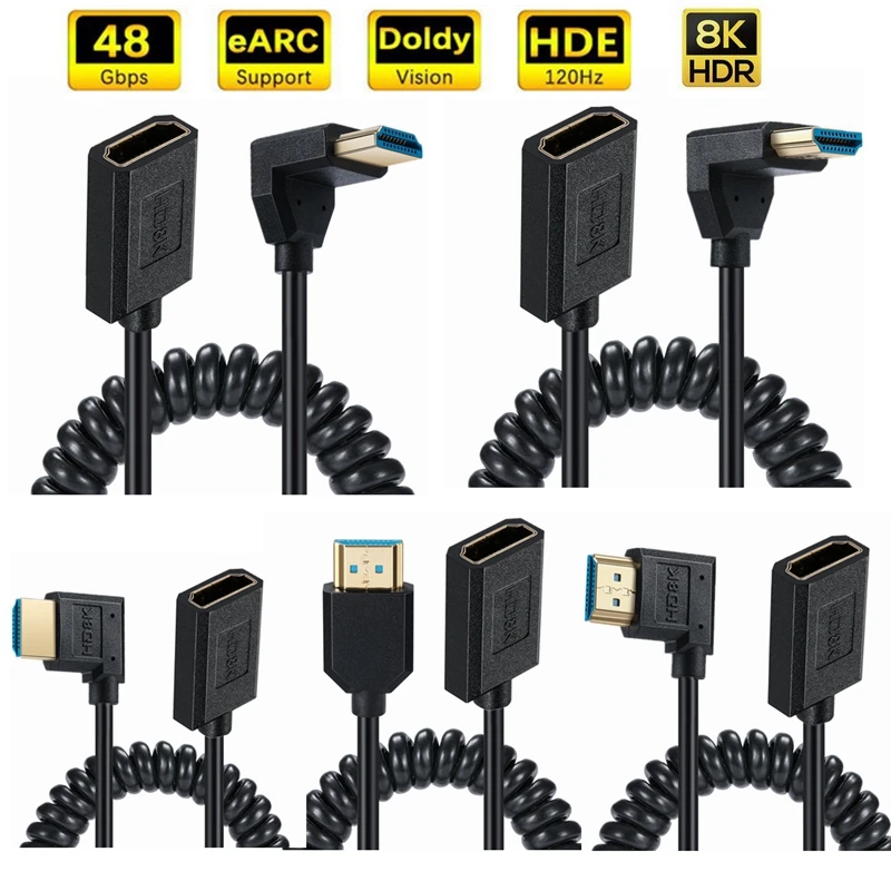 Comprar Cable de resorte de extensión HDMI macho a hembra, ángulo de 90 grados, Ultra fino, 8K, alta velocidad, 8K, 60Hz, 4K, 120Hz, 144Hz, HD