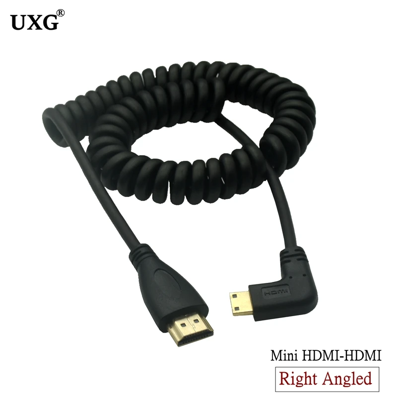 Cable de resorte retráctil chapado en oro para Monitor HD plano, Cable compatible con Mini HDMI 3D de 1,4 V para cámara Nikon Canon ONDA V116w TV