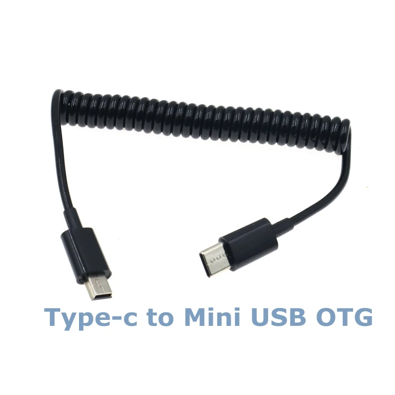 Micro USB revolving mini 5pin male Type-C male spring data cable, special charging cable for power bank;