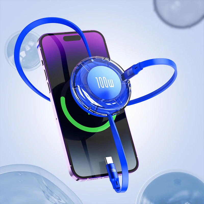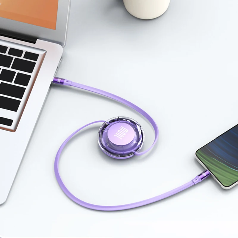 Cable retráctil tipo C de carga súper rápida de 100W 6A Cable cargador USB de 1M carga rápida Compatible con dispositivos USB-C