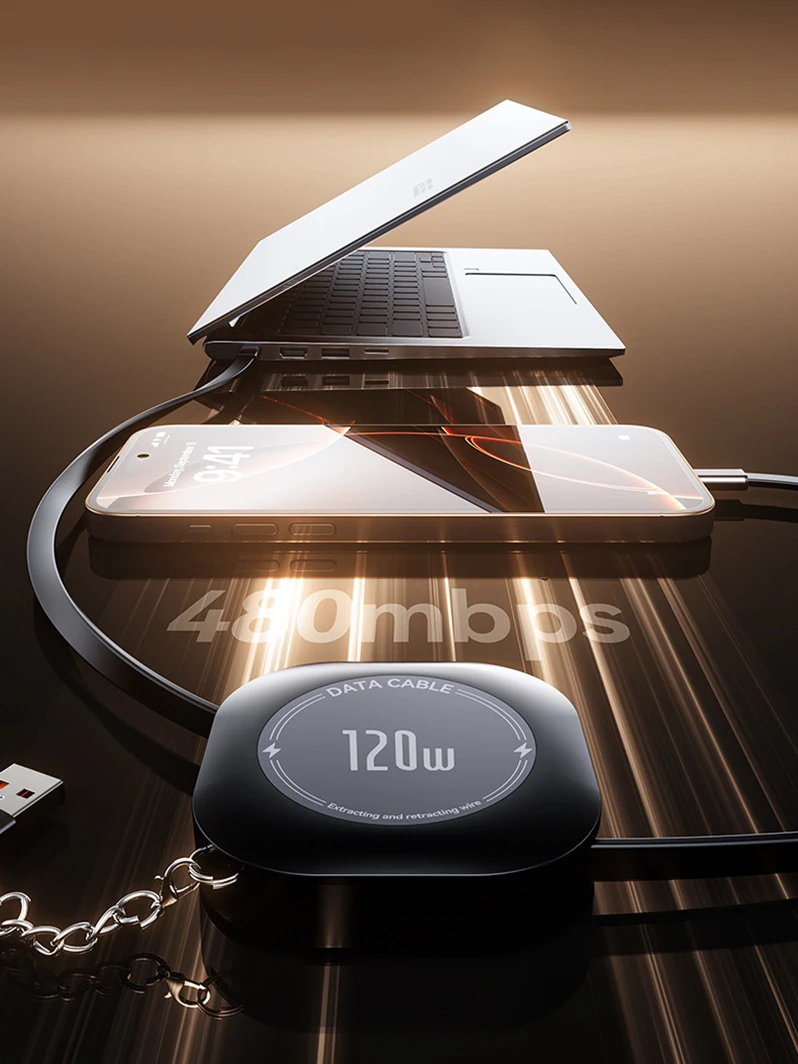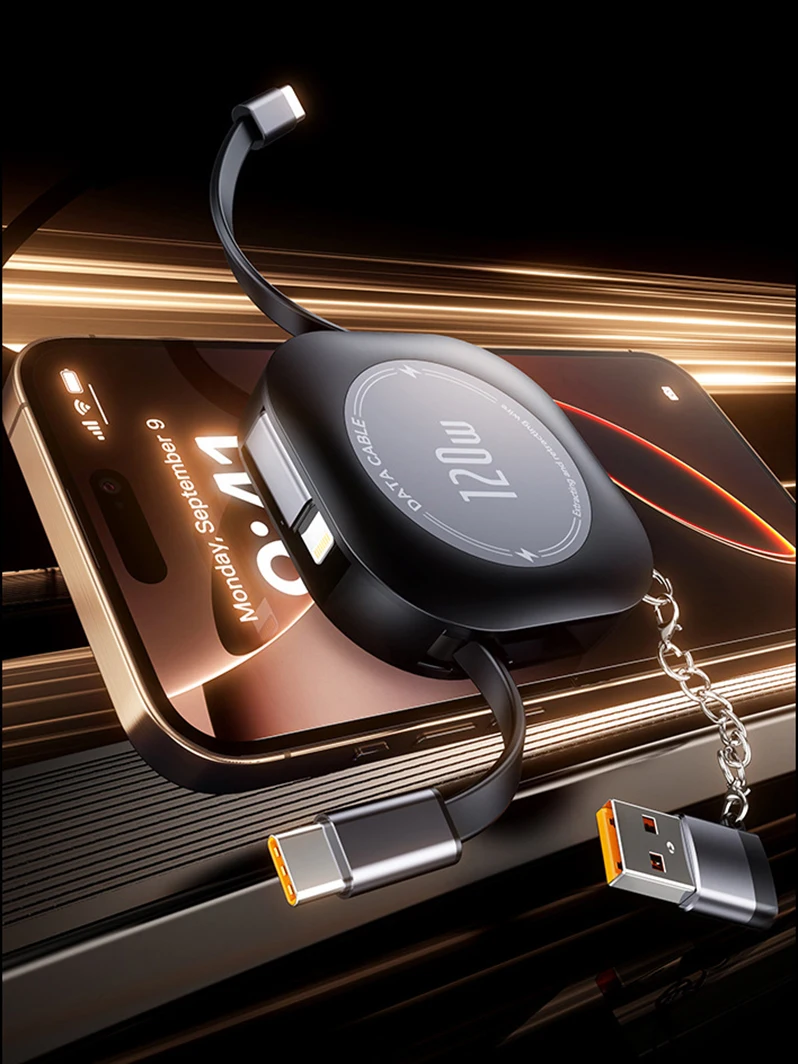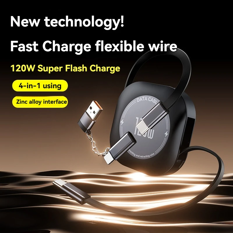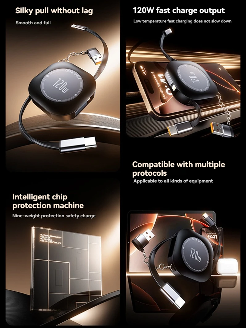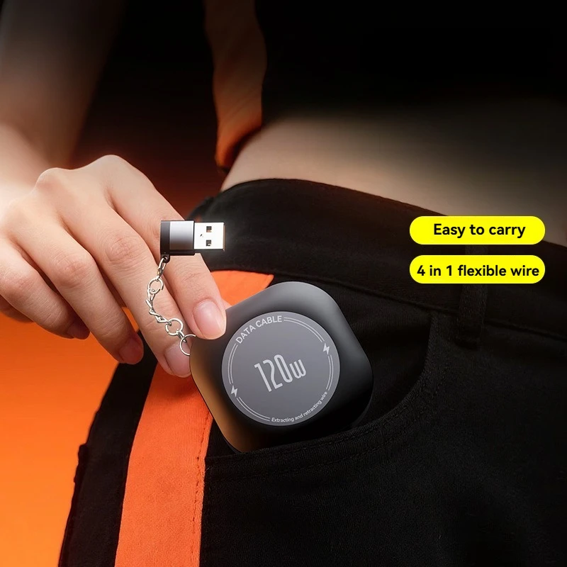Comprar Cable retráctil tipo C de carga súper rápida de 120W 6A, cargador USB de carga rápida de 1M, Cable de carga USB C a C 4 en 1 para electrónica