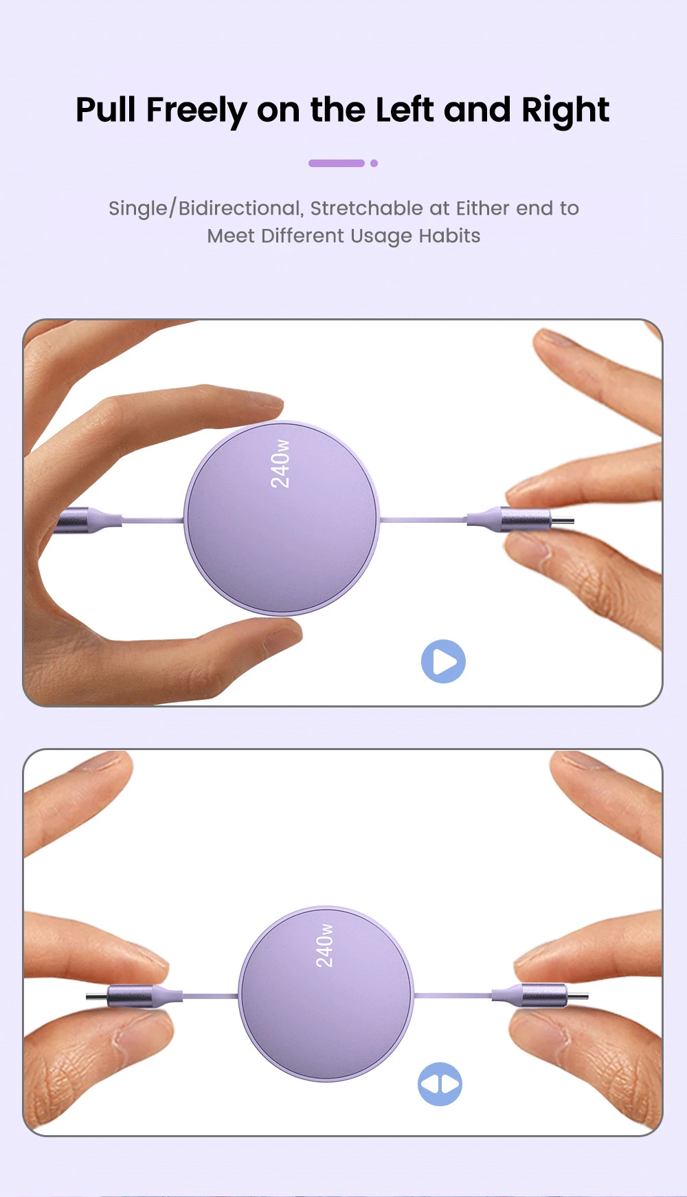 Cable retráctil USB tipo C a tipo C para iphone 15, Huawei, tableta y portátil, carga rápida, PD, 240W