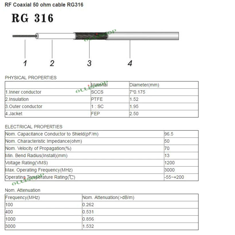 Comprar Cable de RG-316 RG316, Cable coaxial RF de 50 Ohm para conector de soldadura de crimpado, 3m, 5m, 10m