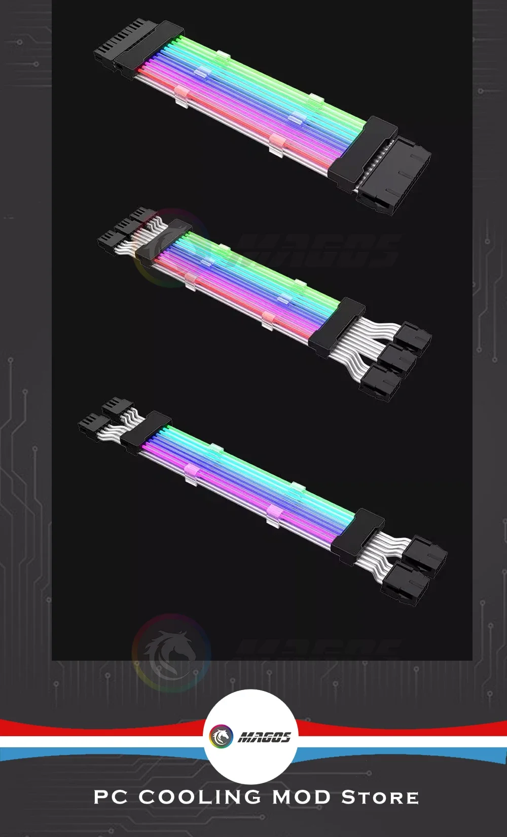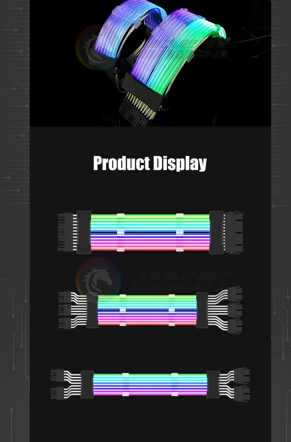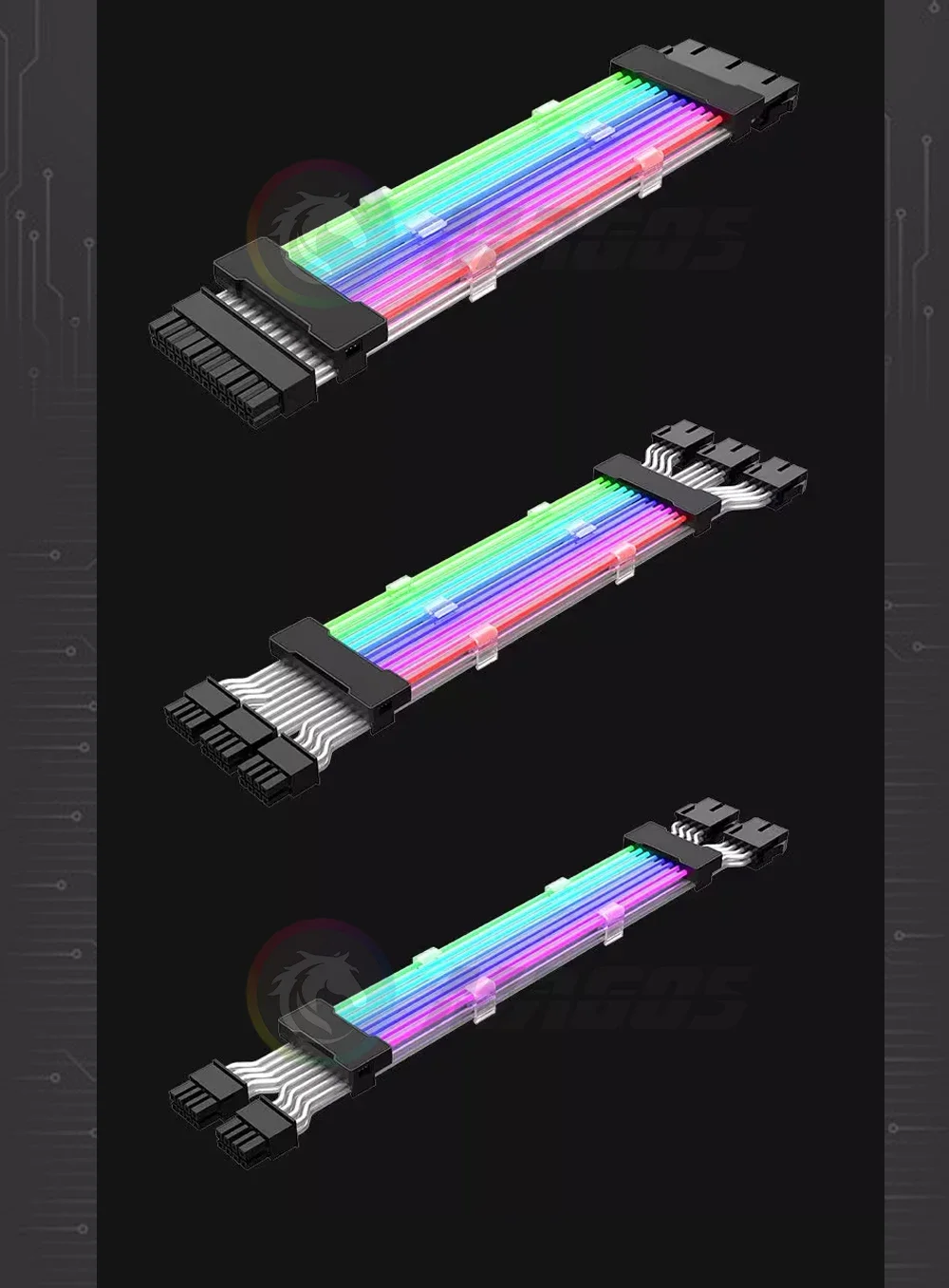 Cable RGB de extensión de PSU para carcasa de PC, ATX 24 pines + PCI-E GPU 8PinX2, adaptador de transferencia de serpentín ARGB de línea de Color neón, SINCRONIZACIÓN M/B 5V