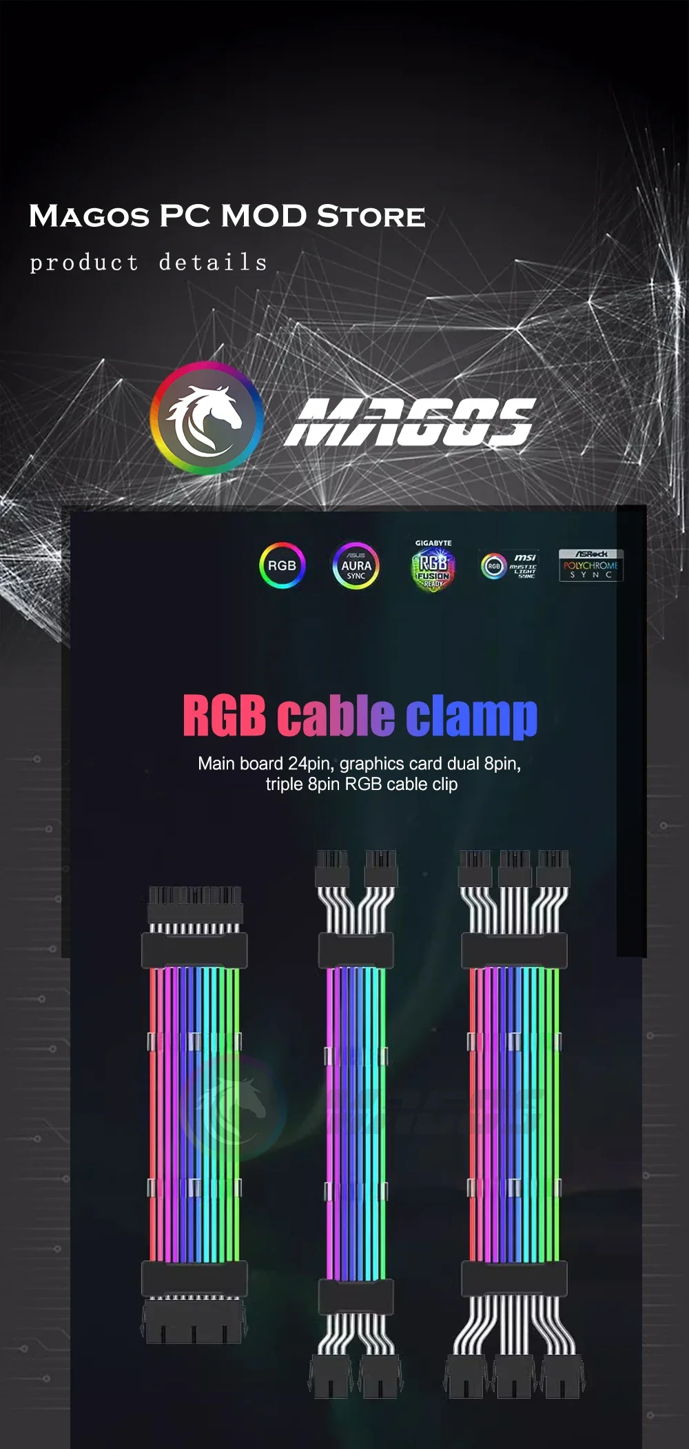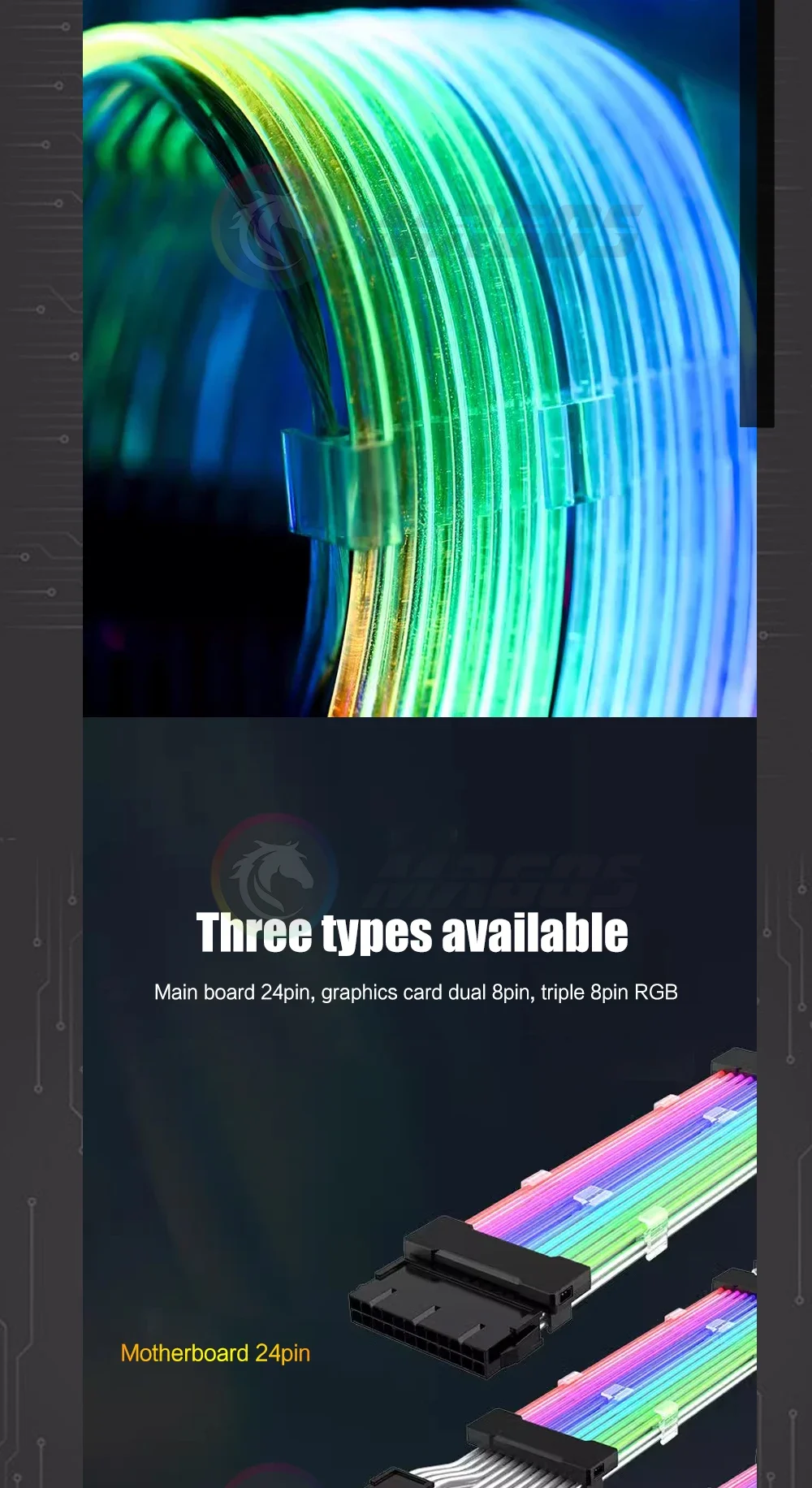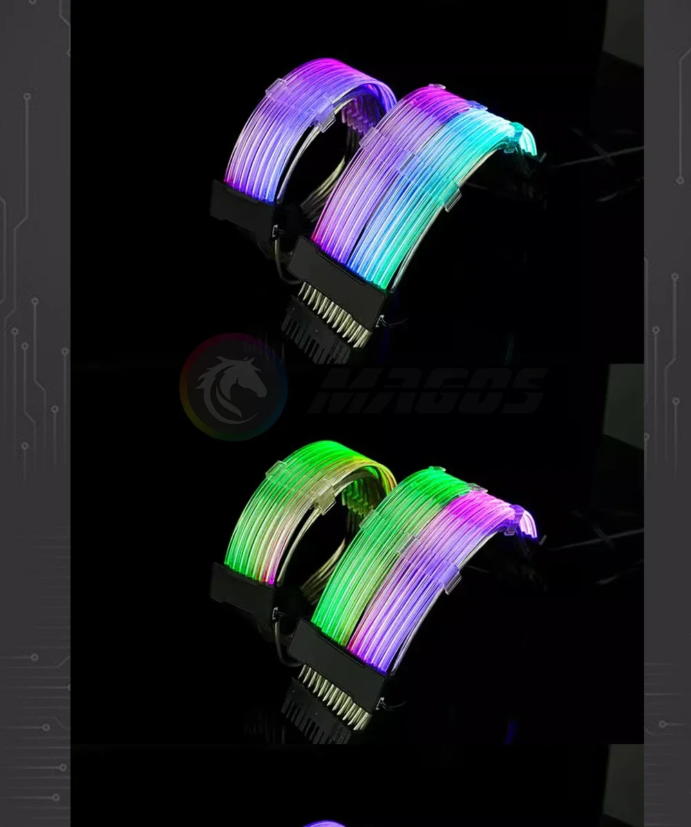Cable RGB de extensión de PSU para carcasa de PC, ATX 24 pines + PCI-E GPU 8PinX2, adaptador de transferencia de serpentín ARGB de línea de Color neón, SINCRONIZACIÓN M/B 5V