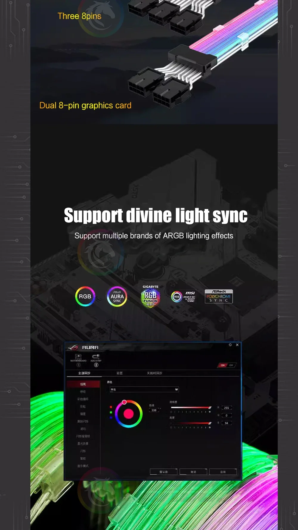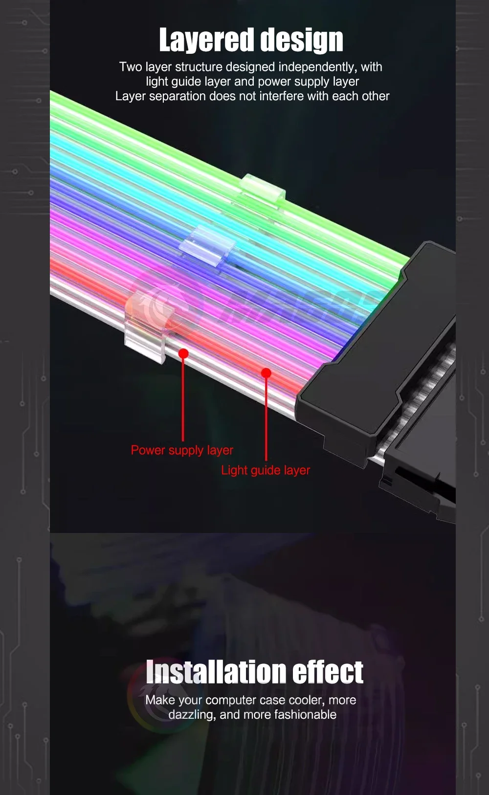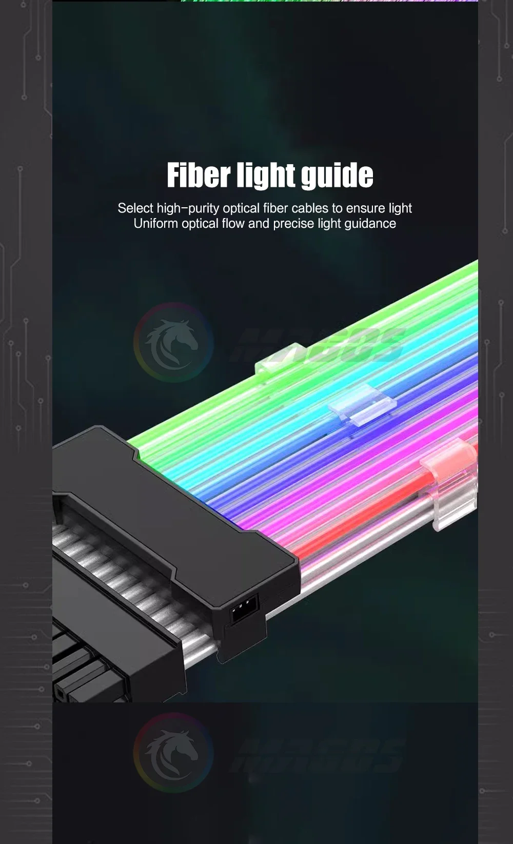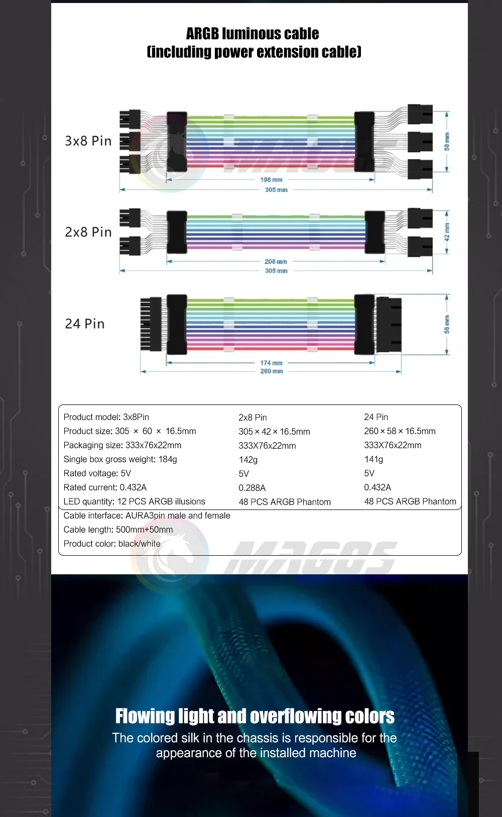 Cable RGB de extensión de fuente de alimentación de computadora, ATX 24 pines + GPU PCI-E 8 pinesX2, adaptador de transferencia de Streamer ARGB de línea de color neón, sincronización M/B 5V 3 pines