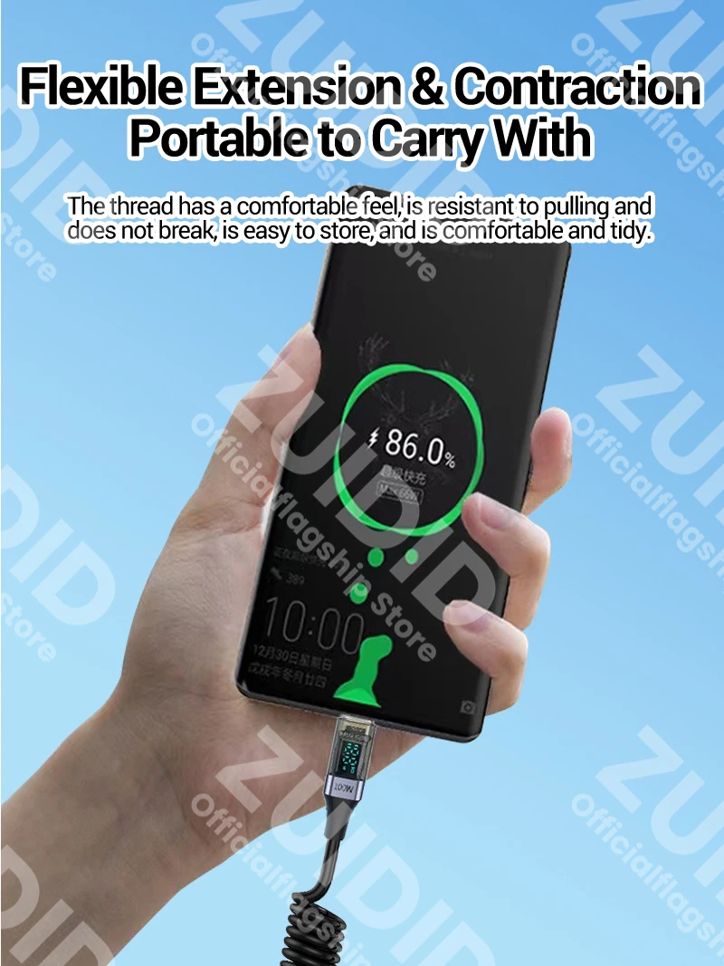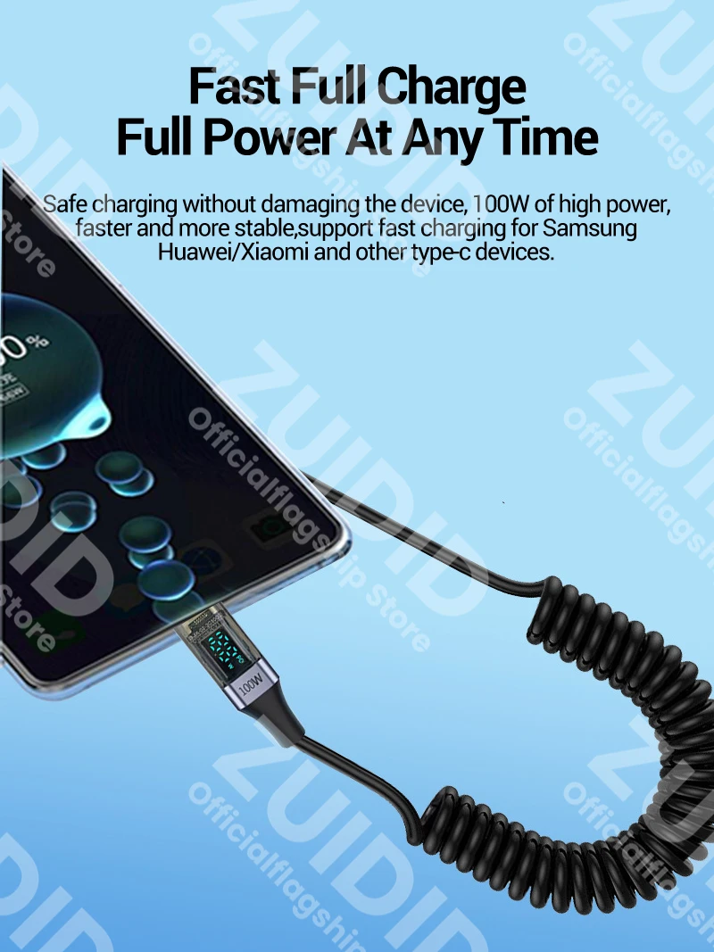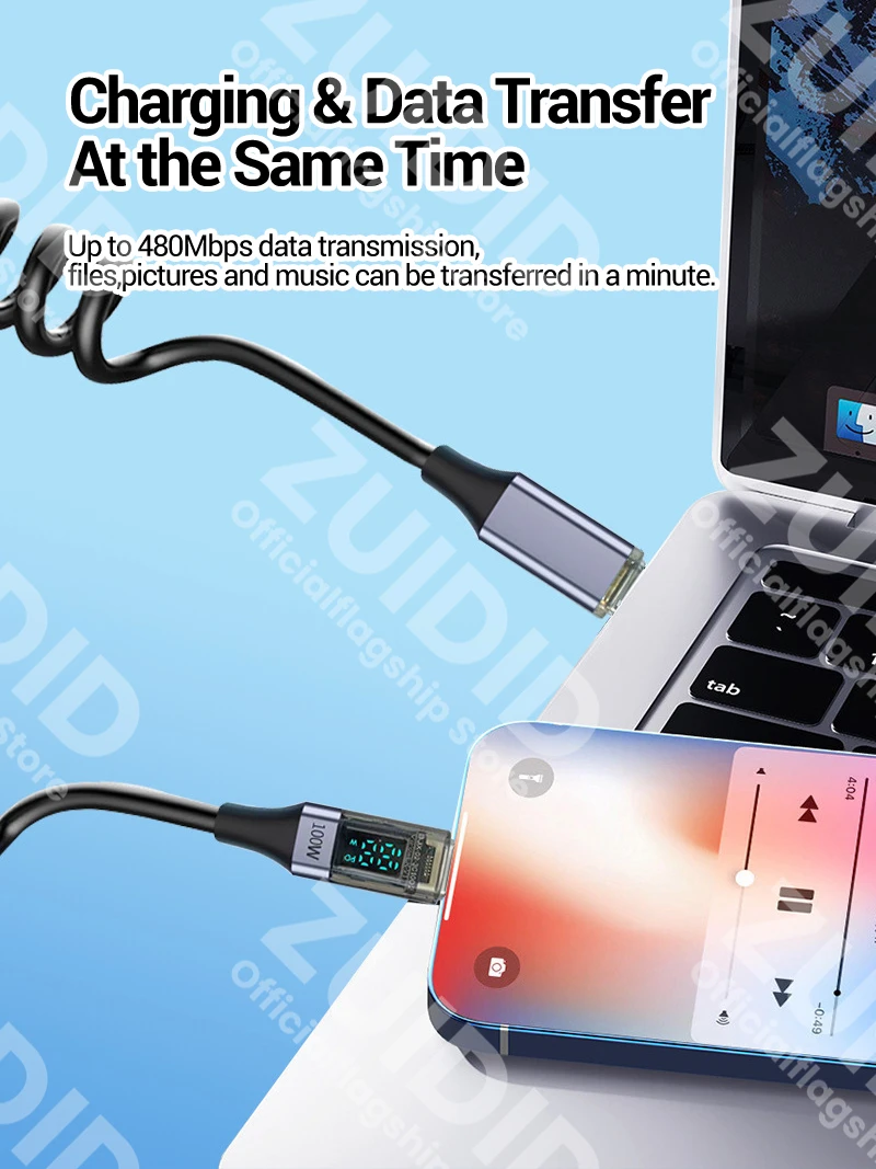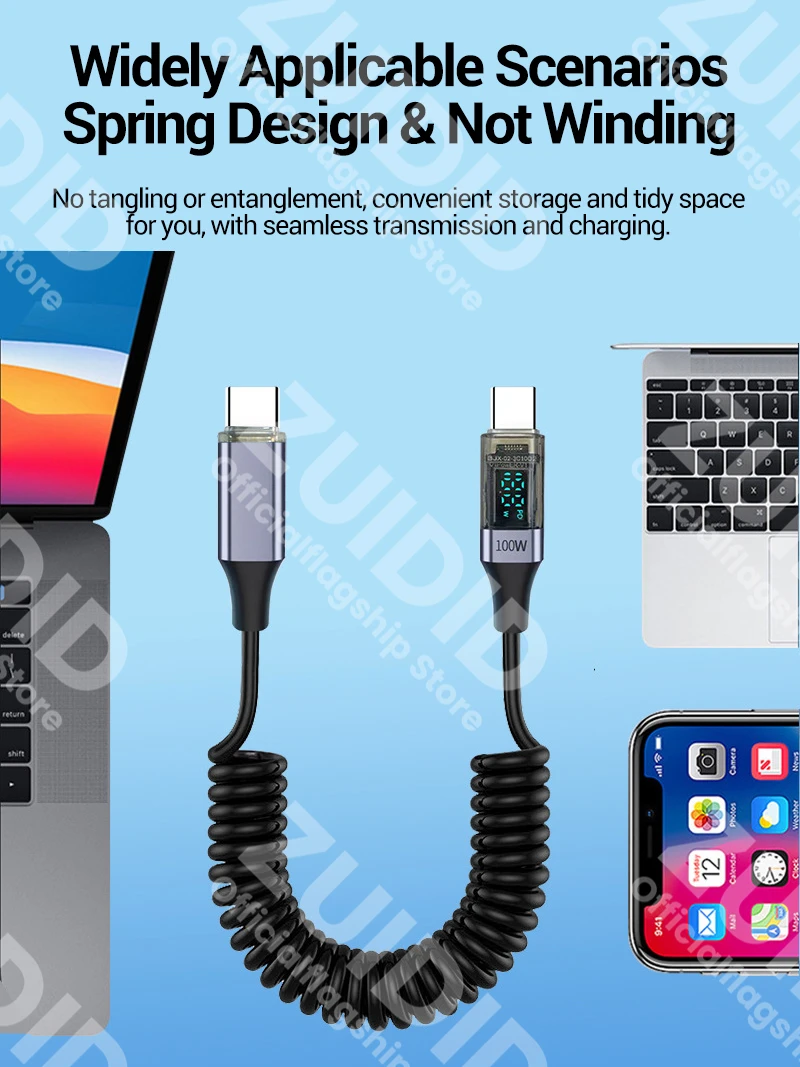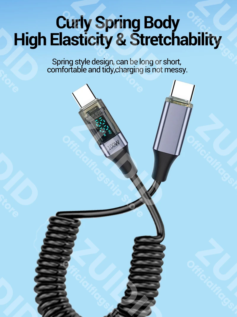 Comprar Cable rizado USB tipo C a USB C de 100W para iPhone 15 Samsung Galaxy S24 MacBook Xiaomi 5A USB C Cable cargador de carga rápida