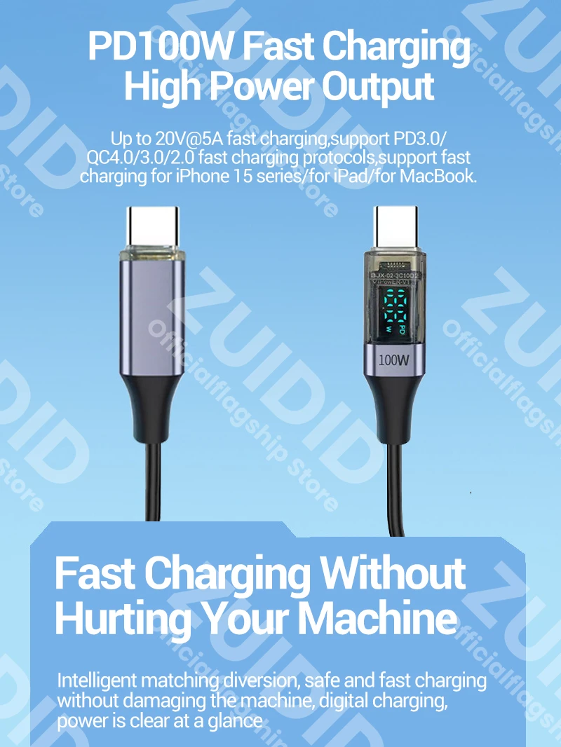 Cable rizado de 100W USB tipo C a USB C para iPhone 15 Samsung Galaxy S24 MacBook Xiaomi 5A USB C Cable cargador de carga rápida
