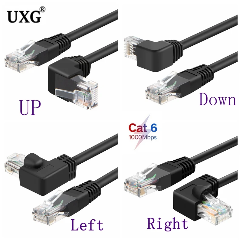 Cable RJ45 26AWG CAT6 UTP en ángulo lateral en forma de L, Cable de parche RJ45 en forma de Ethernet CAT5, Cable Lan CAT6 Gigabit, codo de 1m, 1,8 m/3m