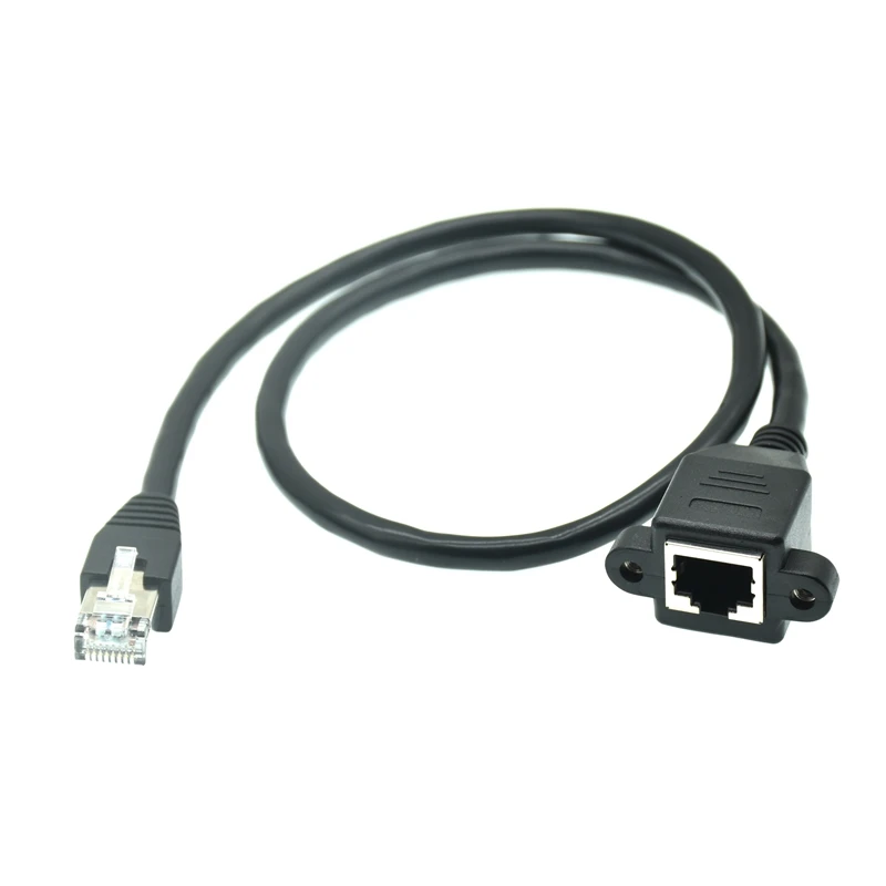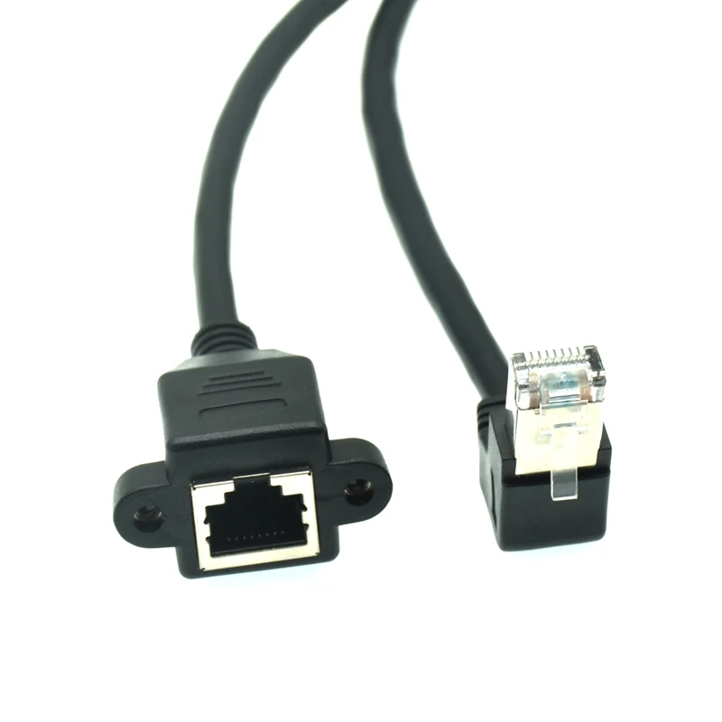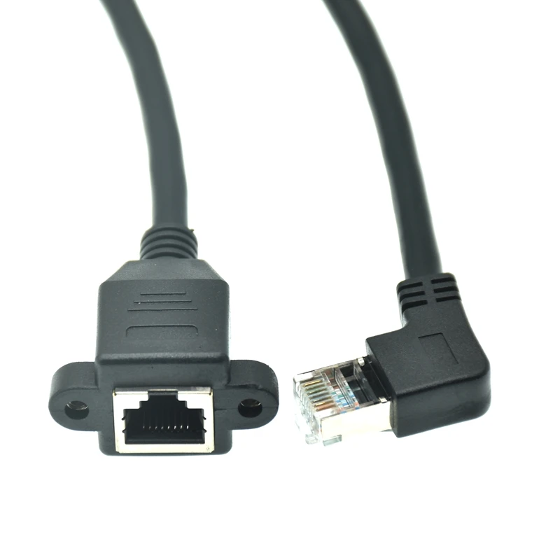 Comprar Cable RJ45 macho a hembra, montaje en Panel de tornillo, red LAN Ethernet, Cable de extensión de ángulo recto de 90 grados de 8 pines, 0,3 m-1M