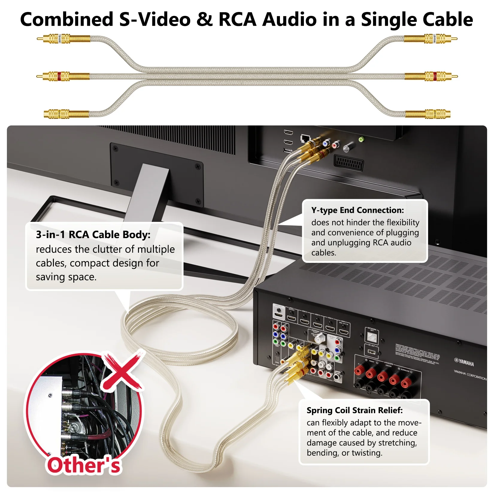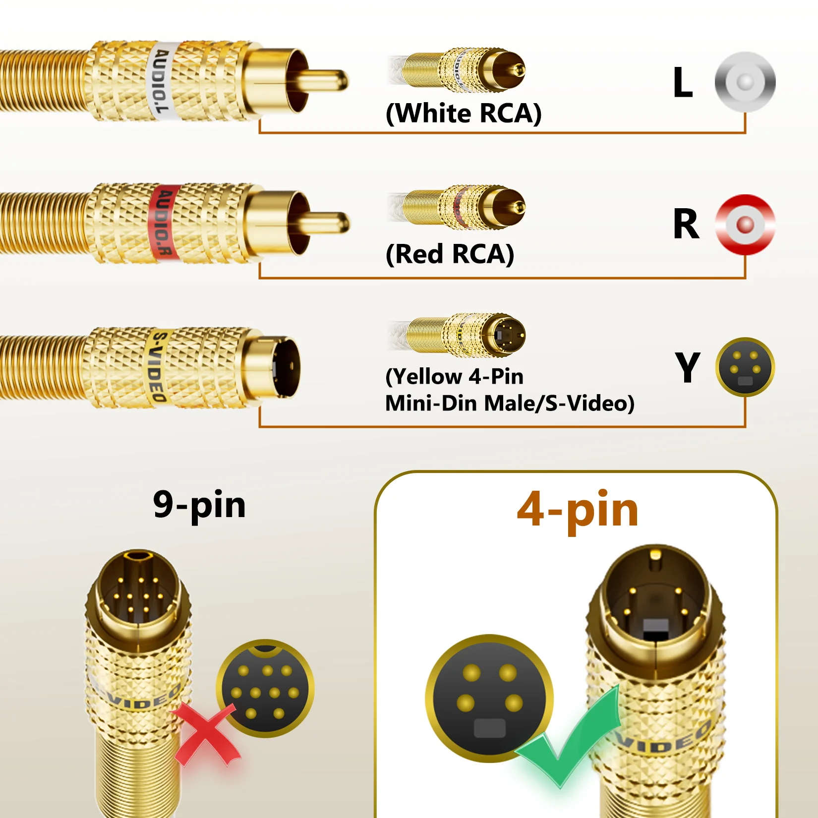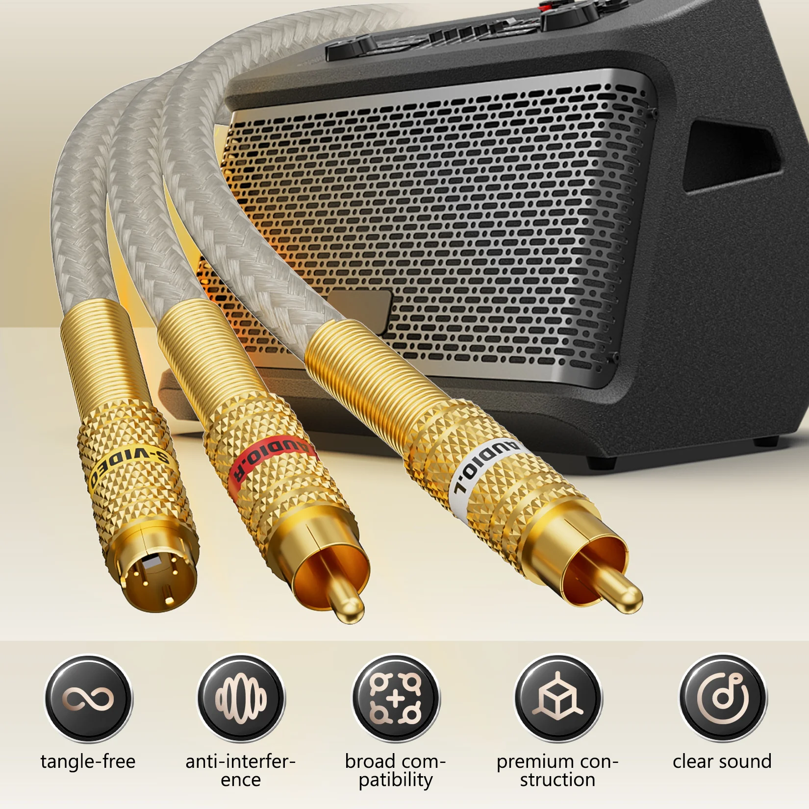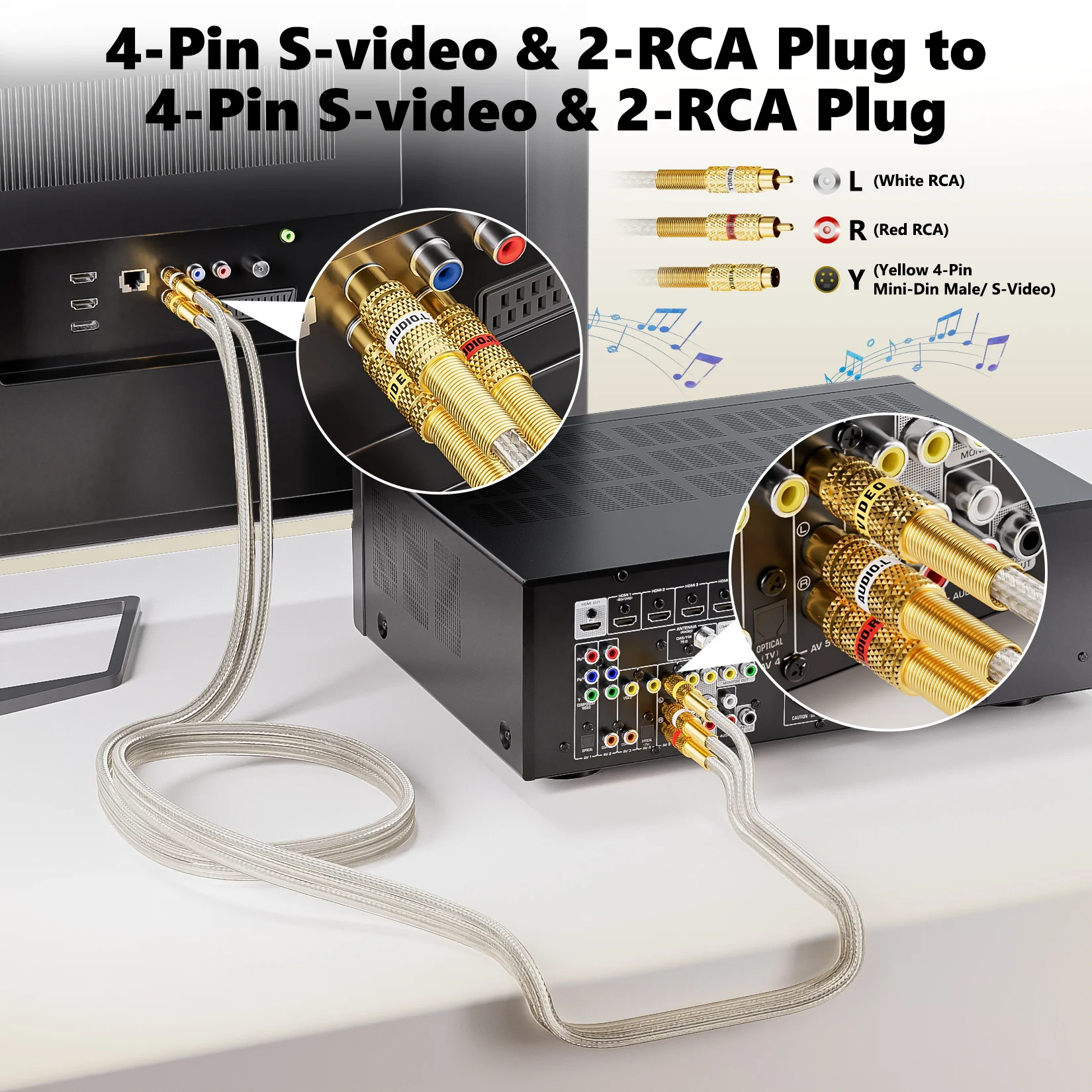Comprar Cable S-Video y RCA de 4 pines Cable combinado L/R 2 RCA S-Video chapado en oro 1,8 M con conductor de cobre estañado y trenzado AL