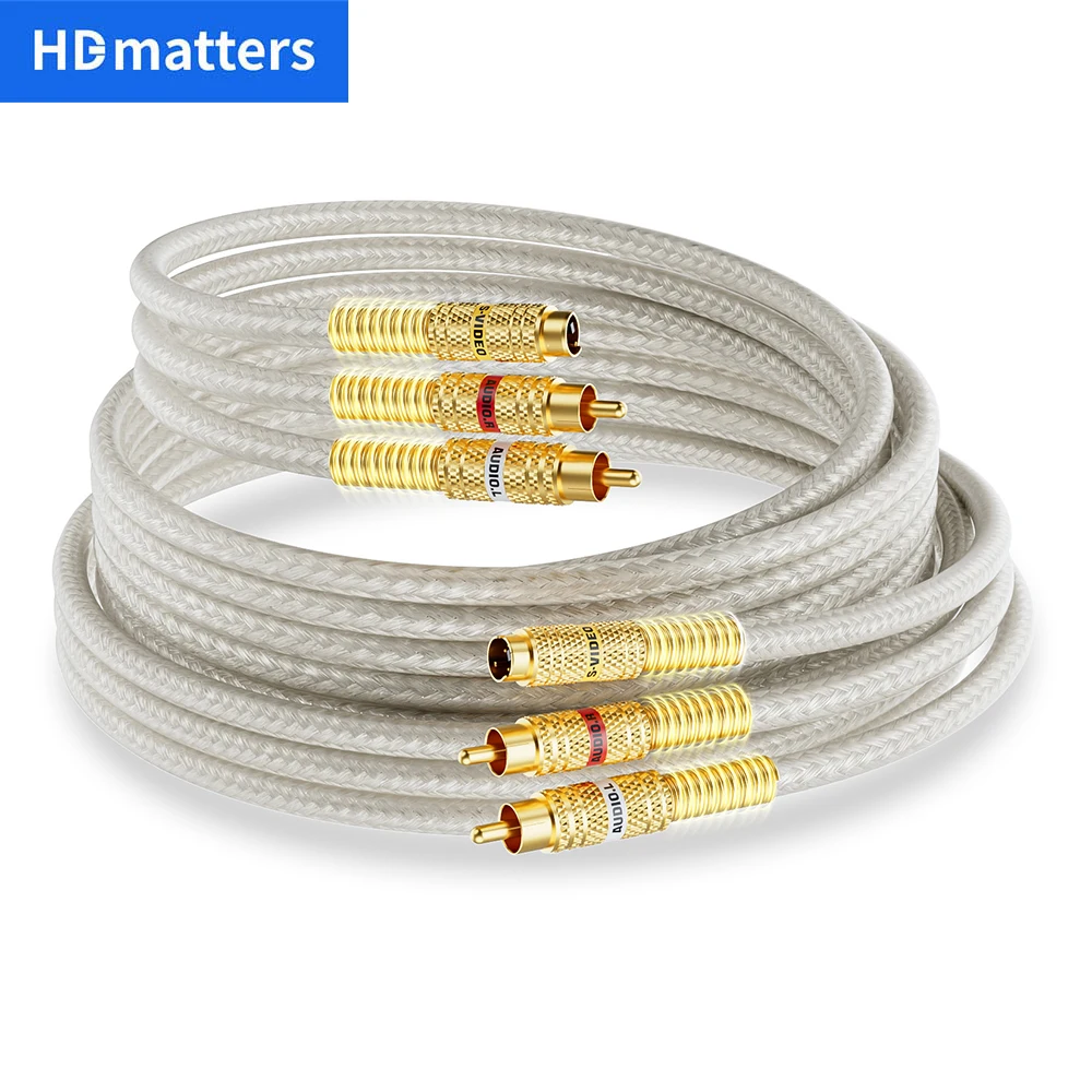 Los tres cables están incluidos juntos para máxima comodidad; Solo un toque de cable le brindará todos los conectores de vídeo y audio que necesita.