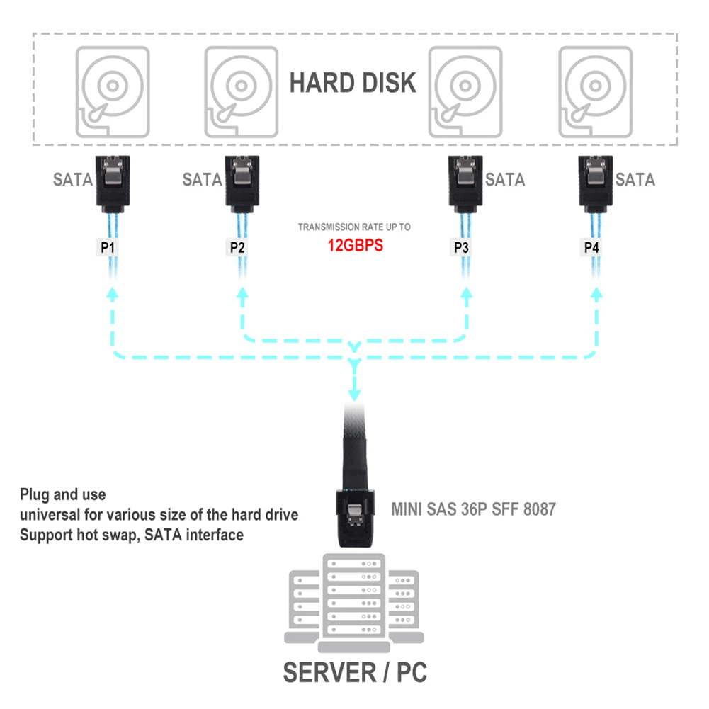Comprar Cable SAS Mini SAS SFF-8087 a 4 SATA, Cable Mini SAS 4i SFF8087 36P a 4 SATA 7P, Cable divisor de datos de disco duro de 12Gbps