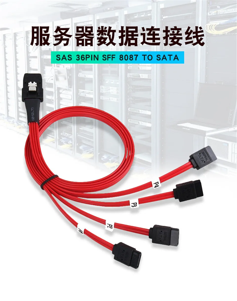 Cable SAS SATA mini-sas SFF-8087 a 4 SATA, Cable Mini SAS 4i SFF8087 36P a 4 SATA 7P, Cable 12 1/0 Gbps, 5M, datos de disco duro