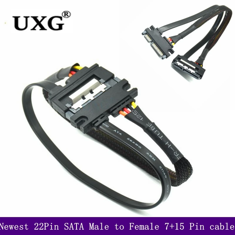 Comprar Cable SATA de 22 Pines de 30cm, Conector de extensión macho a hembra de 7 + 15 Pines, Serial ATA, Combo de alimentación de datos, Conector de 0,3/0,5 m, novedad