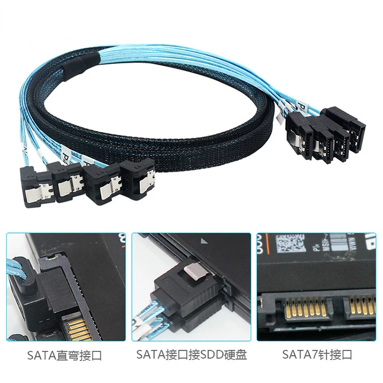Cable mini SAS 4SATA a 4SATA 3,0 7P con cable de disco duro de caja de computadora de malla trenzada