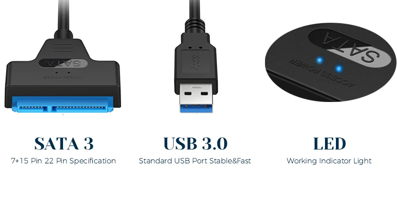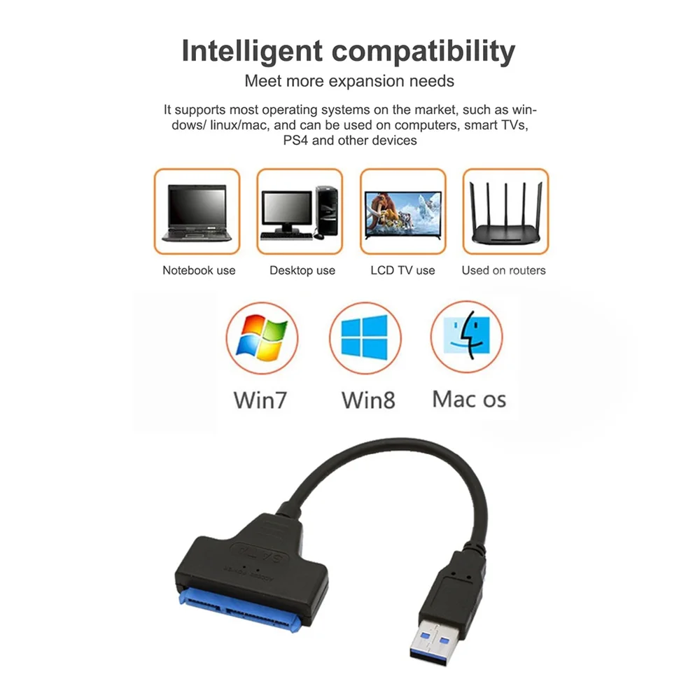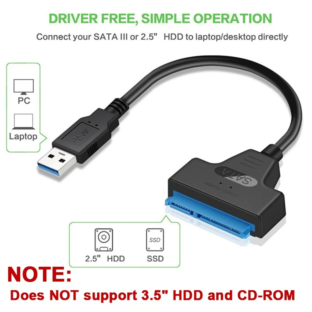 Comprar Cable SATA a USB 3,0/2,0 de hasta 6 Gbps para disco duro externo HDD SSD de 2,5 pulgadas, adaptador SATA 3 de 22 pines, Cable USB 3,0 a Sata III