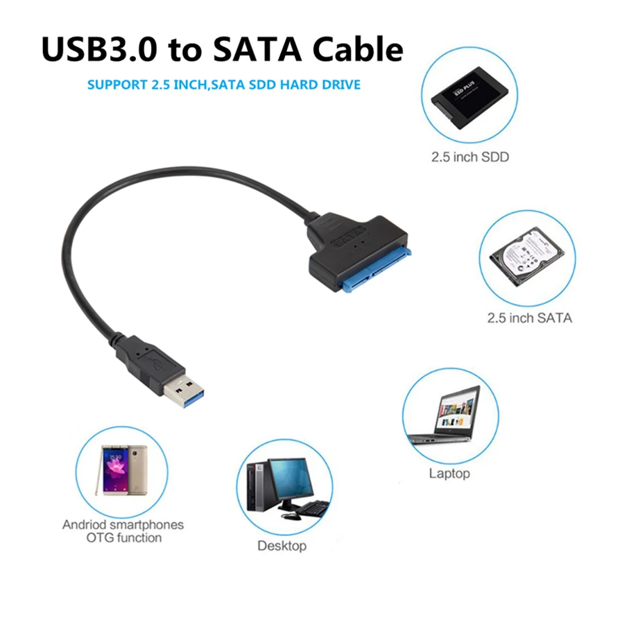 1. Adaptador SATA III USB 2,0 3,0 Cable Disco duro externo USB a Serial ATA Convertidor de 22 pines Disco duro 6 Gbps para HDD/SSD de 2,5 ".