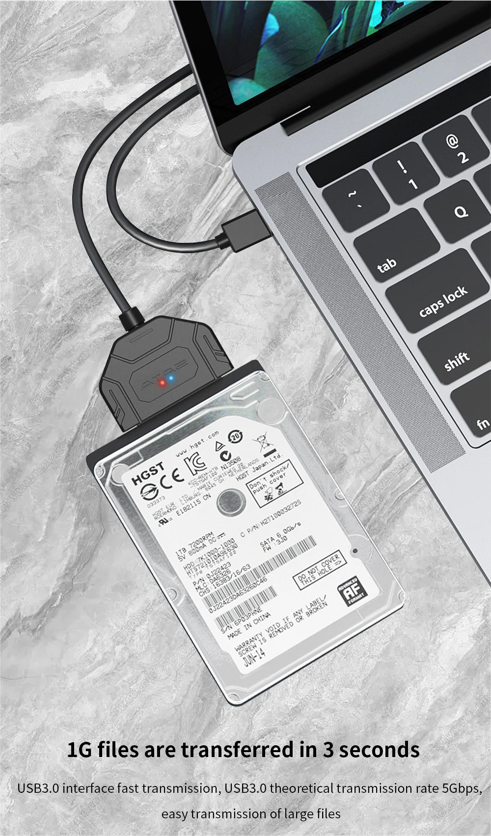 Cable SATA a USB3.0, Cable USB 3,0 a Sata III, compatible con disco duro HDD externo SSD de 2,5 pulgadas, Cable Sata III de 22 pines para PC y portátil