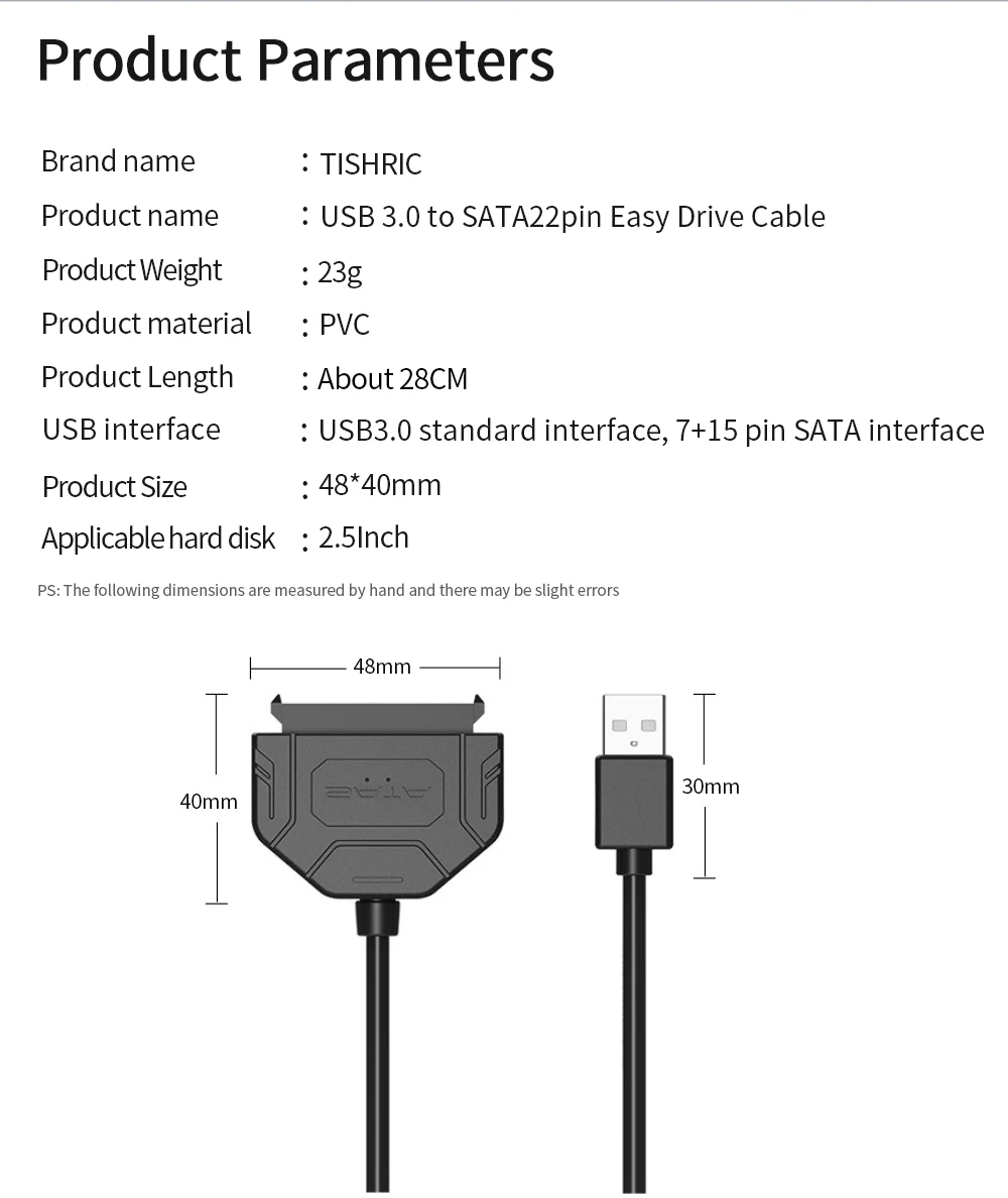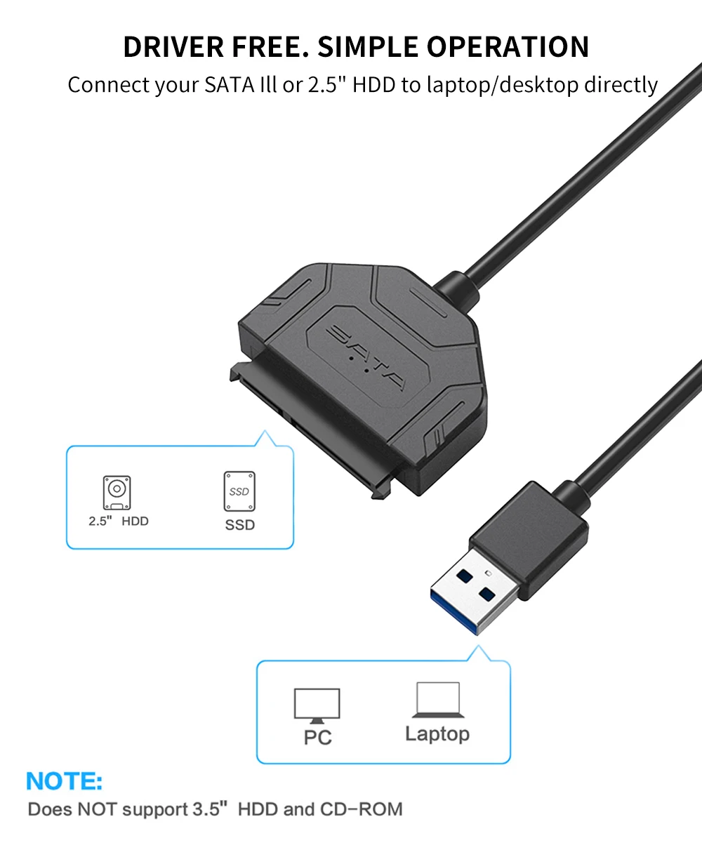 Comprar Cable de SATA a USB 3,0, Cable USB 3,0 III a Sata, compatible con disco duro externo HDD SSD de 2,5 pulgadas, Cable Sata III de 22 pines para PC y portátil