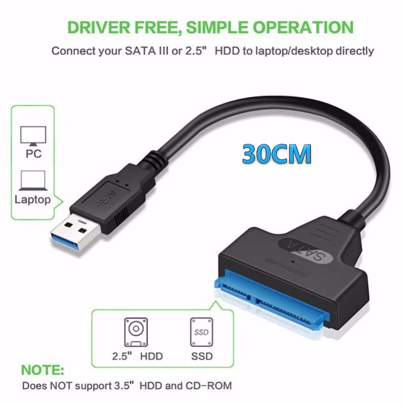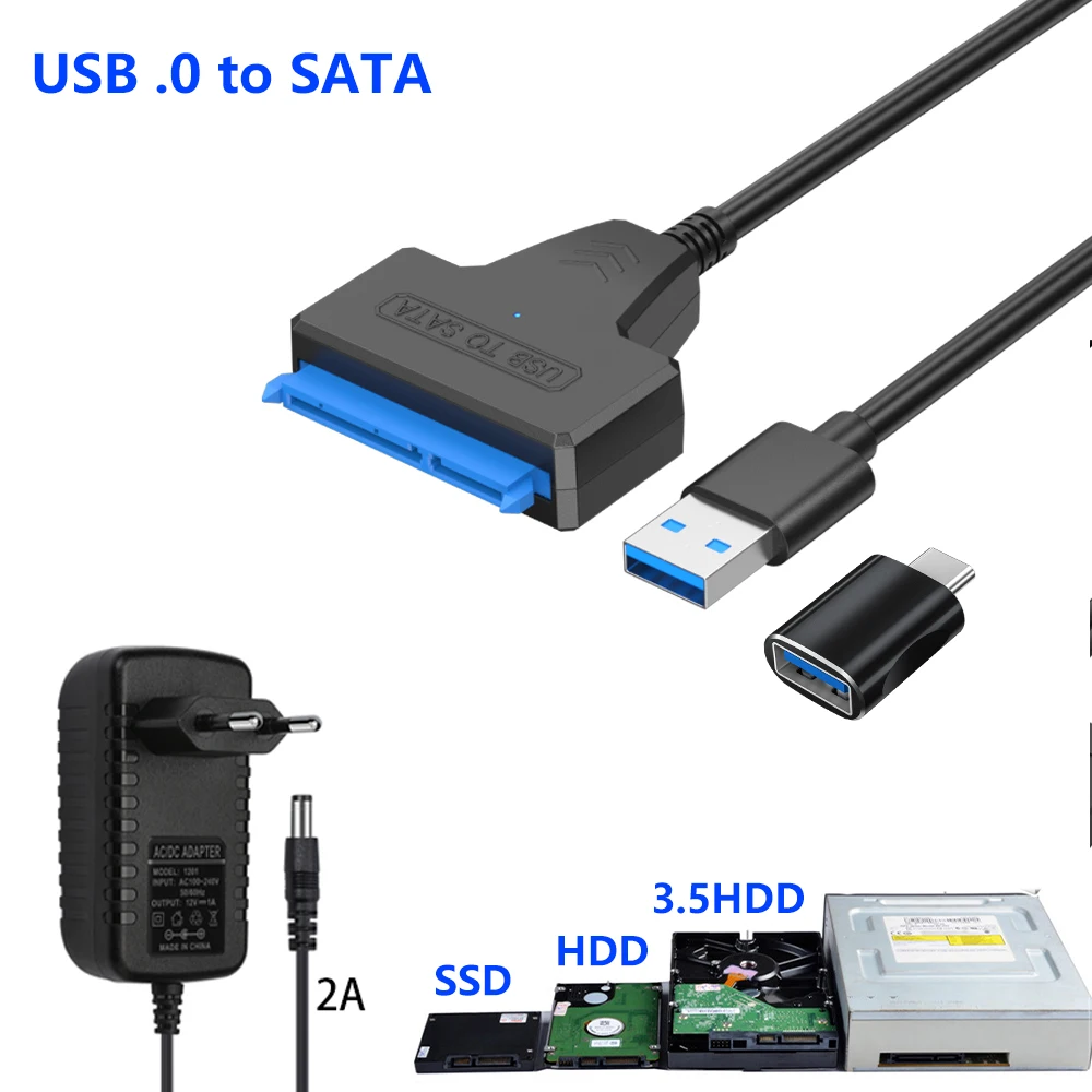 Comprar Cable SATA a USB 3,0 para disco duro externo HDD SSD de 3,5 y 2,5 pulgadas, conector USB 3,0 a Cable SataIII de 22 pines con fuente de alimentación de 12V
