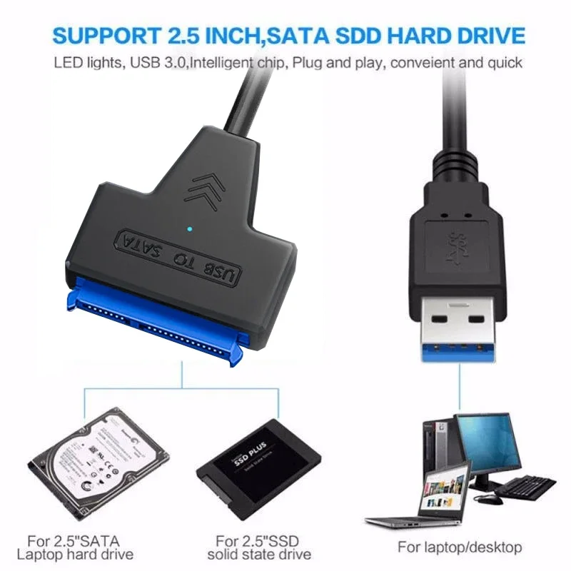 Comprar Cable SATA a USB 3,0 para disco duro externo HDD SSD de 3,5 y 2,5 pulgadas, conector USB 3,0 a Cable SataIII de 22 pines con fuente de alimentación de 12V